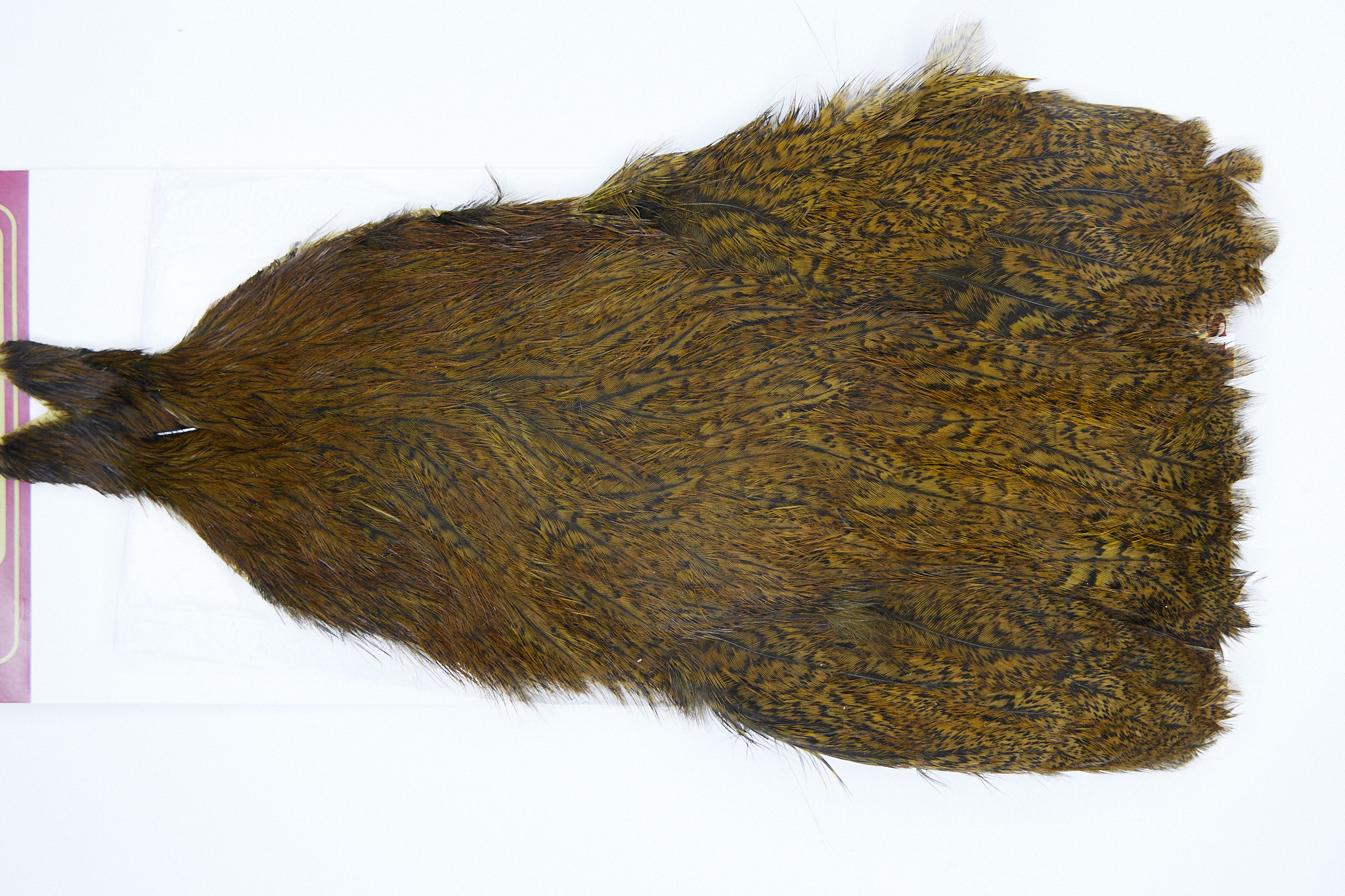 3153 is a Coq De Leon Hen Cape of Speckled Golden Olive color. The image shown is an actual photo of this cape. This is NEW UNUSED HACKLE.