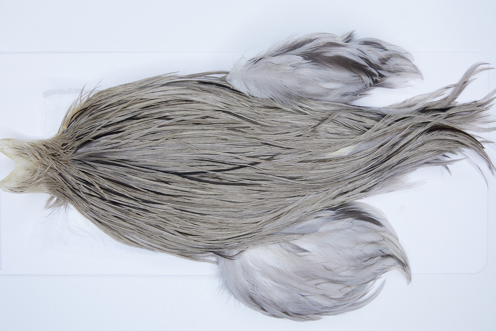 3540 is a Beaverkill Rooster Cape of Light Grey Dun color that ties predominately size 10-18. The image shown is an actual photo of this dry fly cape. This is NEW UNUSED HACKLE.