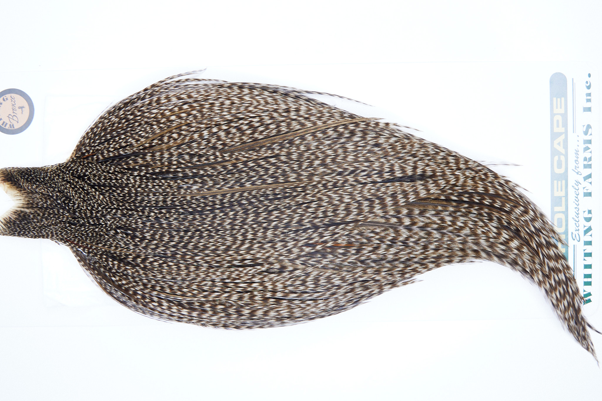 3658 Hebert Dry Fly Hackle, Bronze Grade Rooster Cape Dun Grizzly Ties Size 10-22