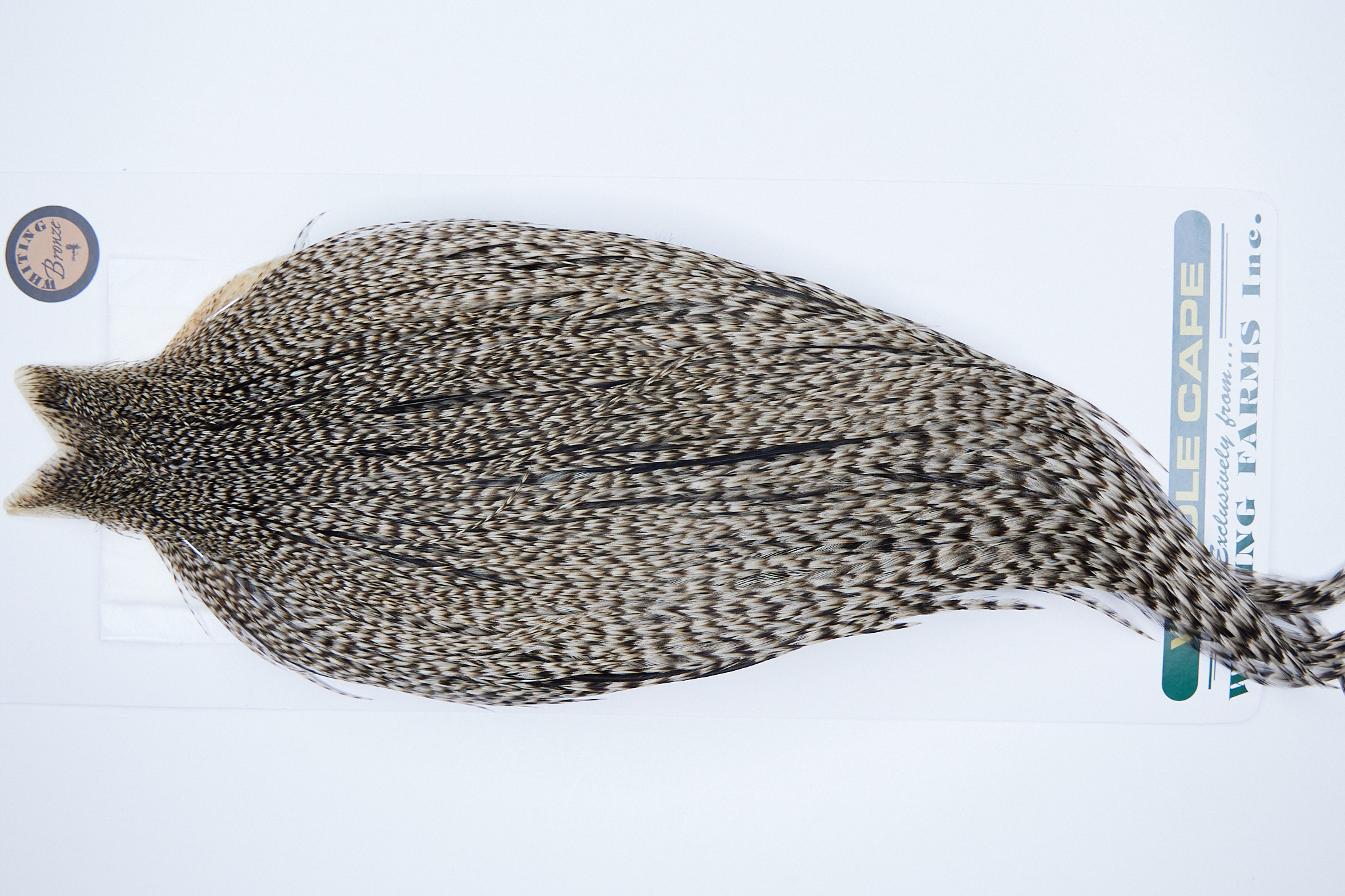 3660 Hebert Dry Fly Hackle, Bronze Grade Rooster Cape Dun Grizzly Ties Size 10-22
