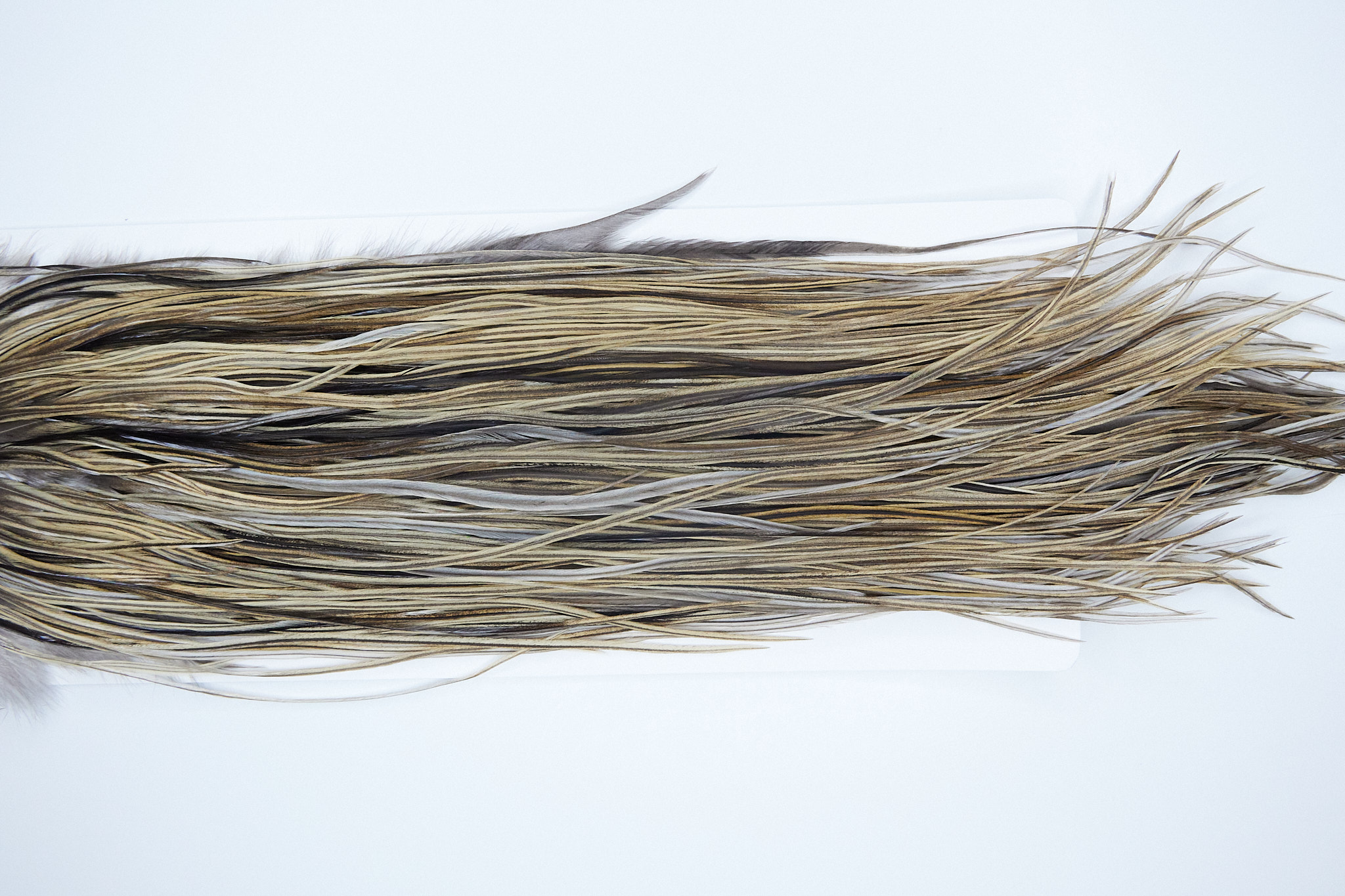 3739 is a Heritage 2 Grade Rooster Saddle of Dun Badger color that ties predominately size 12-14. The image shown is an actual photo of this dry fly saddle. This is NEW UNUSED HACKLE.