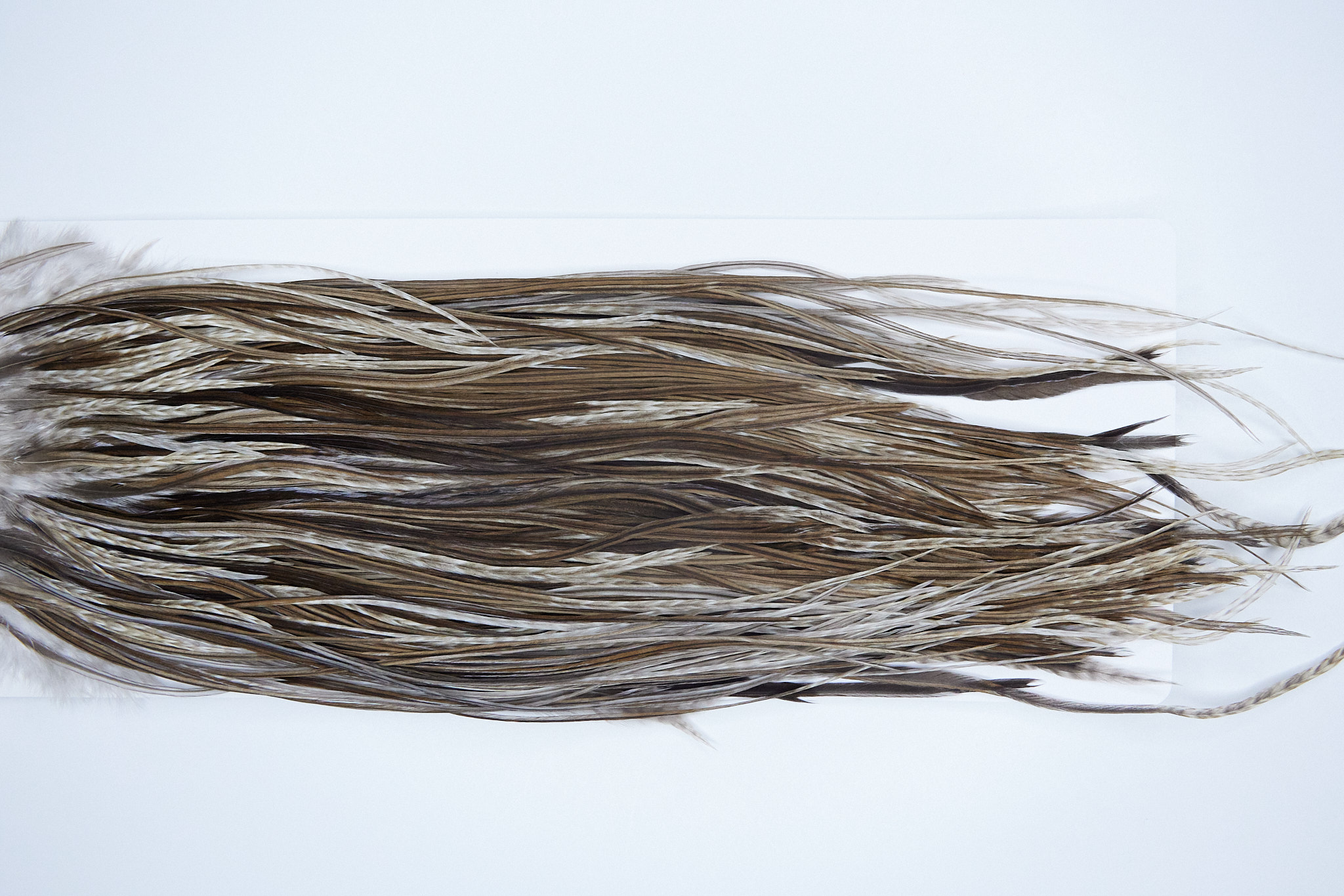 3794 is a Heritage 3 Grade Rooster Saddle of Variant color that ties predominately size 12-14. The image shown is an actual photo of this dry fly saddle. This is NEW UNUSED HACKLE.