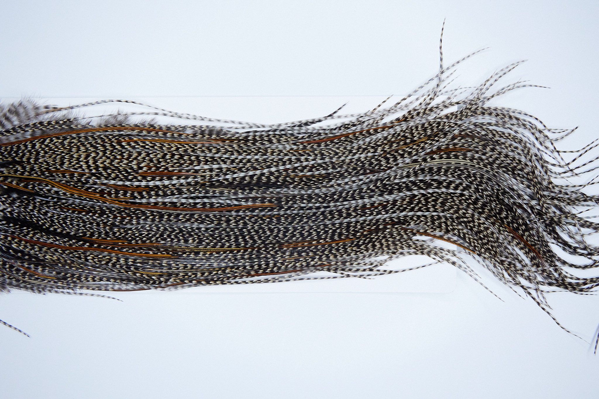 3803 is a Heritage 3 Grade Midge Saddle of Grizzly Variant color that ties predominately size 16. The image shown is an actual photo of this dry fly saddle. This is NEW UNUSED HACKLE.