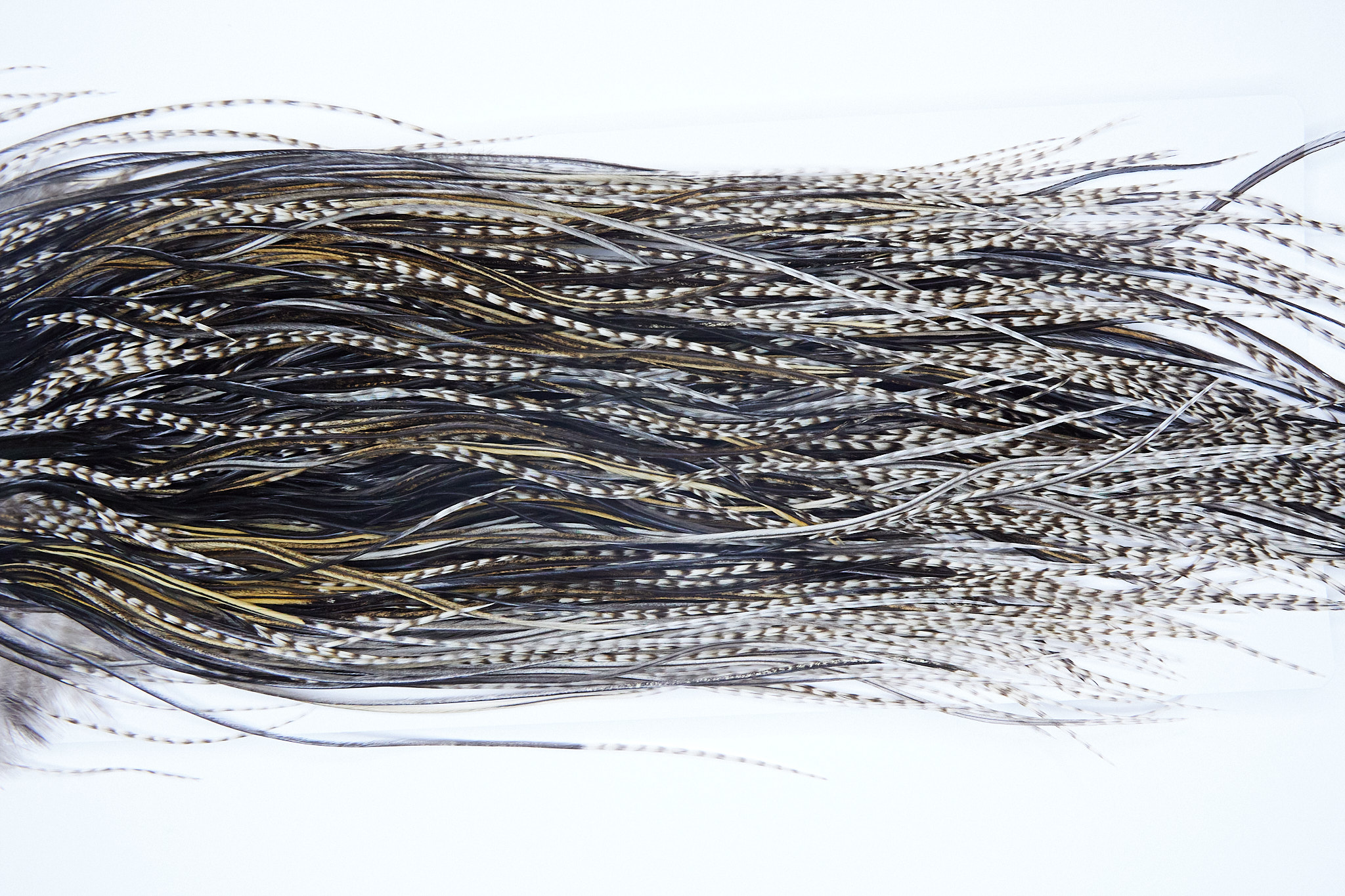 3941 is a Hebert Minor Pro Grade Rooster Saddle of Grizzly Variant color that ties predominately size 14-18. The image shown is an actual photo of this dry fly saddle. This is NEW UNUSED HACKLE.