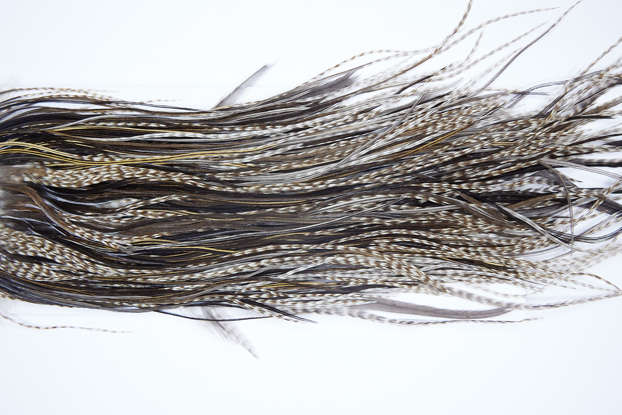 3978 Hebert Dry Fly Hackle, Bronze Grade Rooster Saddle Dun Grizzly Ties Size 12-14