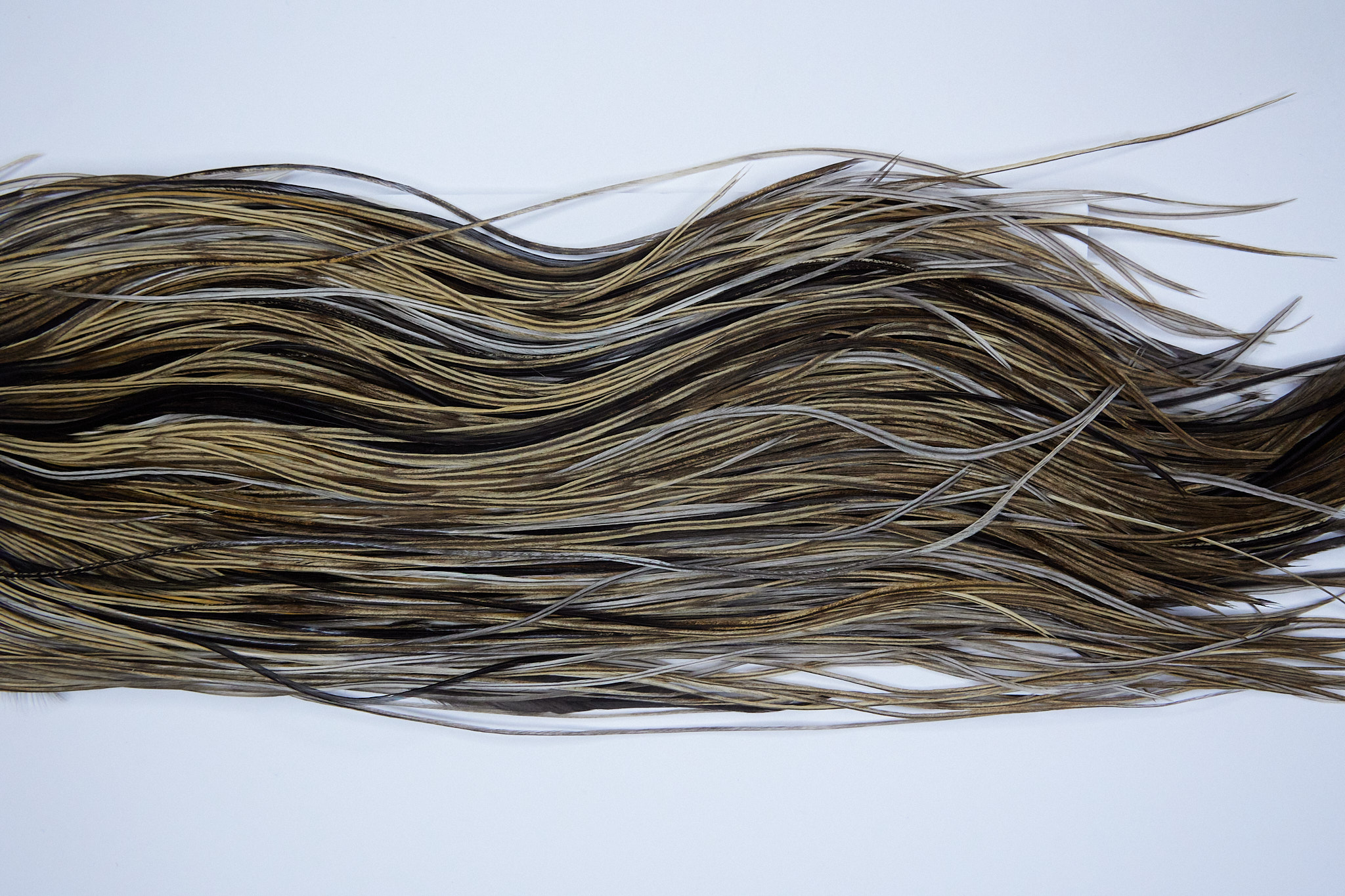 4005 is a Hebert Minor Silver Grade Rooster Saddle of Dun Badger color that ties predominately size 14-16. The image shown is an actual photo of this dry fly saddle. This is NEW UNUSED HACKLE.