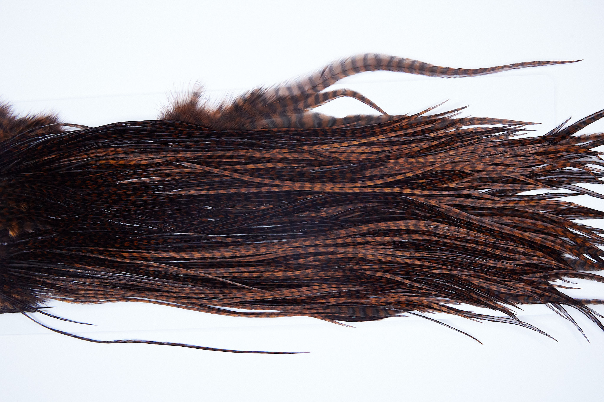 4098 is a Whiting Bronze Grade Rooster Saddle of Grizzly Coachman Brown color that ties predominately size 14-16. The image shown is an actual photo of this dry fly saddle. This is NEW UNUSED HACKLE.