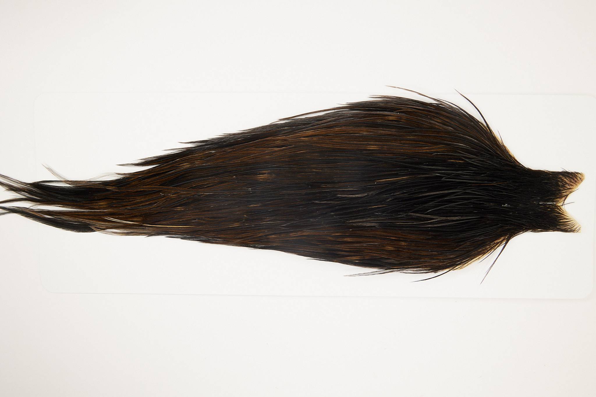 4314is a JimsFlyCo Grade 2 Rooster Cape of Dark Dun color that ties predominately size 10-18. The image shown is an actual photo of this dry fly cape. This is NEW UNUSED HACKLE.