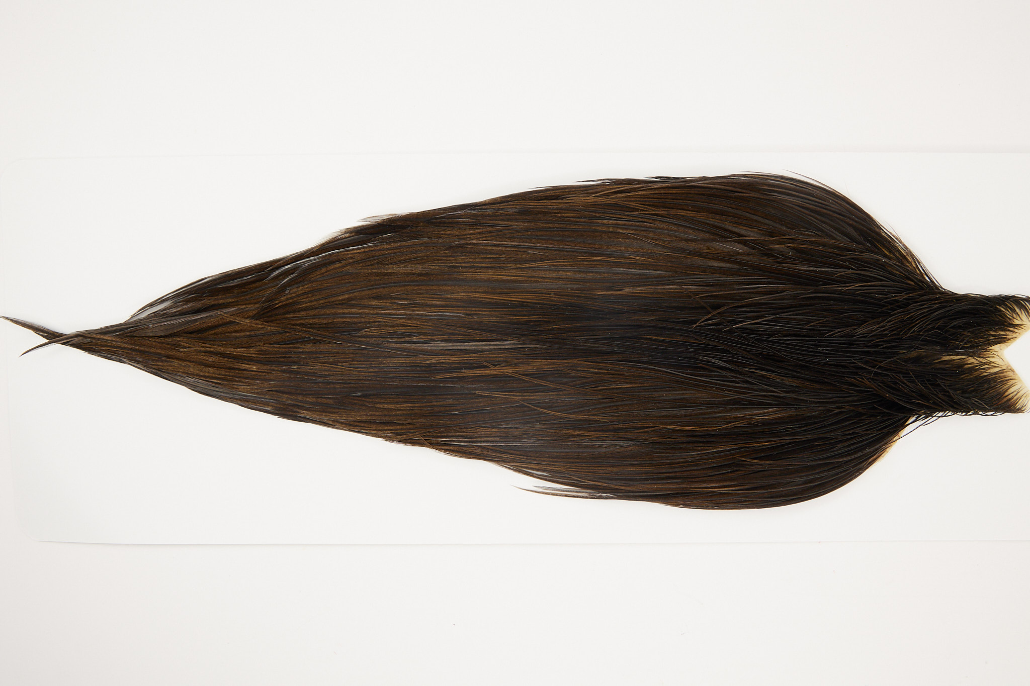 4315is a JimsFlyCo Grade 2 Rooster Cape of Dark Dun color that ties predominately size 8-20. The image shown is an actual photo of this dry fly cape. This is NEW UNUSED HACKLE.