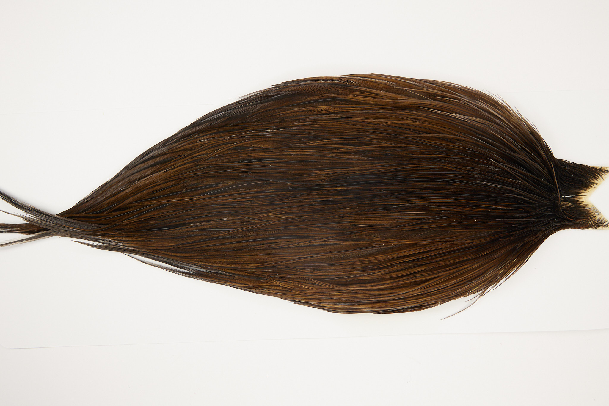 4319is a JimsFlyCo Grade 2 Rooster Cape of Dark Dun color that ties predominately size 10-22. The image shown is an actual photo of this dry fly cape. This is NEW UNUSED HACKLE.
