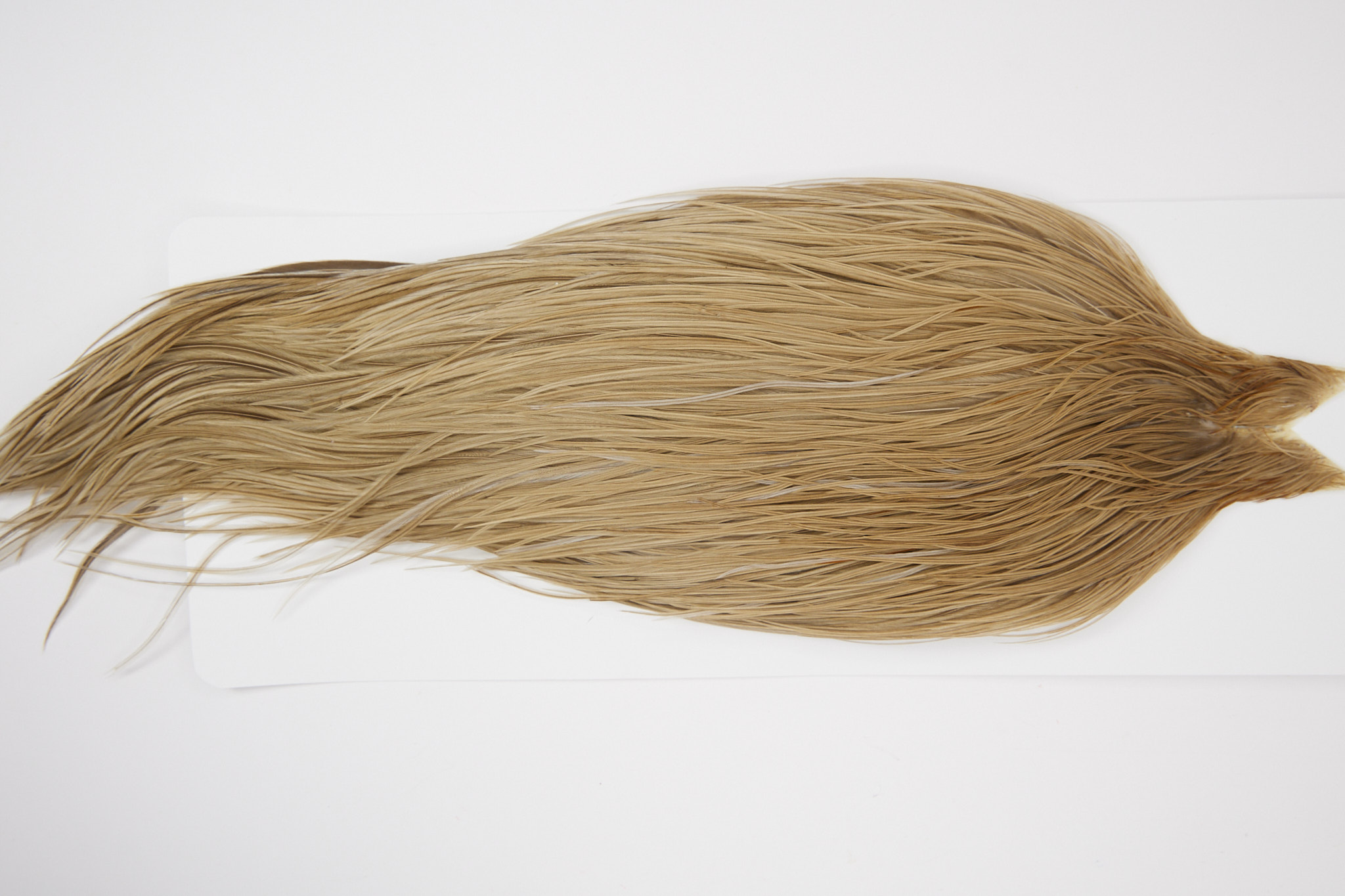 4334is a JimsFlyCo Grade 2 Rooster Cape of Medium Dun color that ties predominately size 10-20. The image shown is an actual photo of this dry fly cape. This is NEW UNUSED HACKLE.