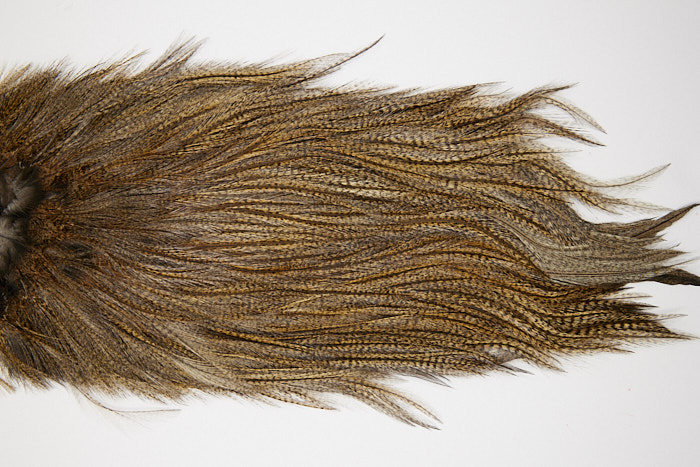 4734 is a Coq De Leon Silver Grade Rooster Cape of Light Pardo color that ties predominately size NA. The image shown is an actual photo of this dry fly saddle. This is NEW UNUSED HACKLE.