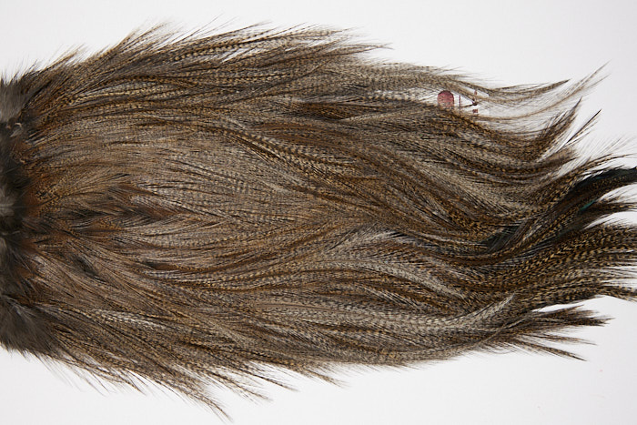 4740 is a Coq De Leon Silver Grade Rooster Cape of Dark Pardo color that ties predominately size NA. The image shown is an actual photo of this dry fly saddle. This is NEW UNUSED HACKLE.