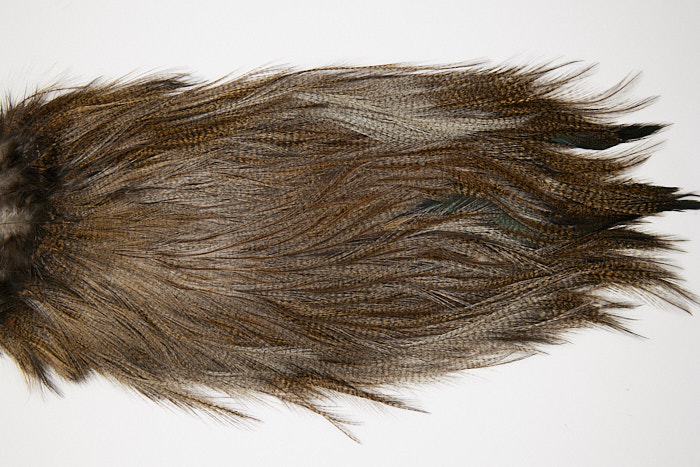 4743 is a Coq De Leon Silver Grade Rooster Cape of Dark Pardo color that ties predominately size NA. The image shown is an actual photo of this dry fly saddle. This is NEW UNUSED HACKLE.
