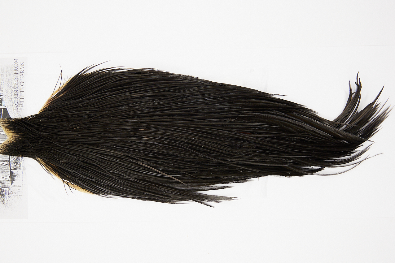 4972 is a Beaverkill Rooster Cape of Black color that ties predominately size 10-22. The image shown is an actual photo of this dry fly cape. This is NEW UNUSED HACKLE.