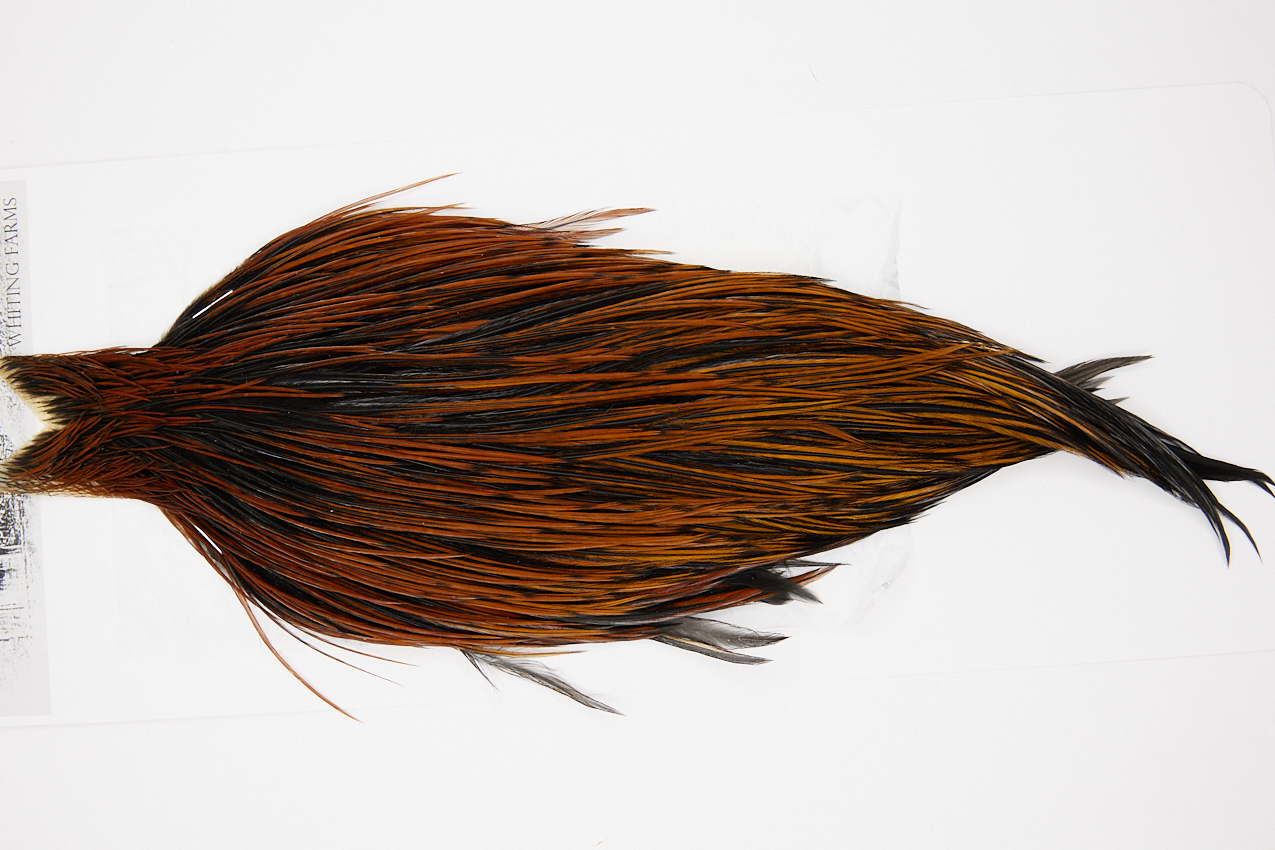 4985 is a Beaverkill Rooster Cape of Furnace color that ties predominately size 10-18. The image shown is an actual photo of this dry fly cape. This is NEW UNUSED HACKLE.