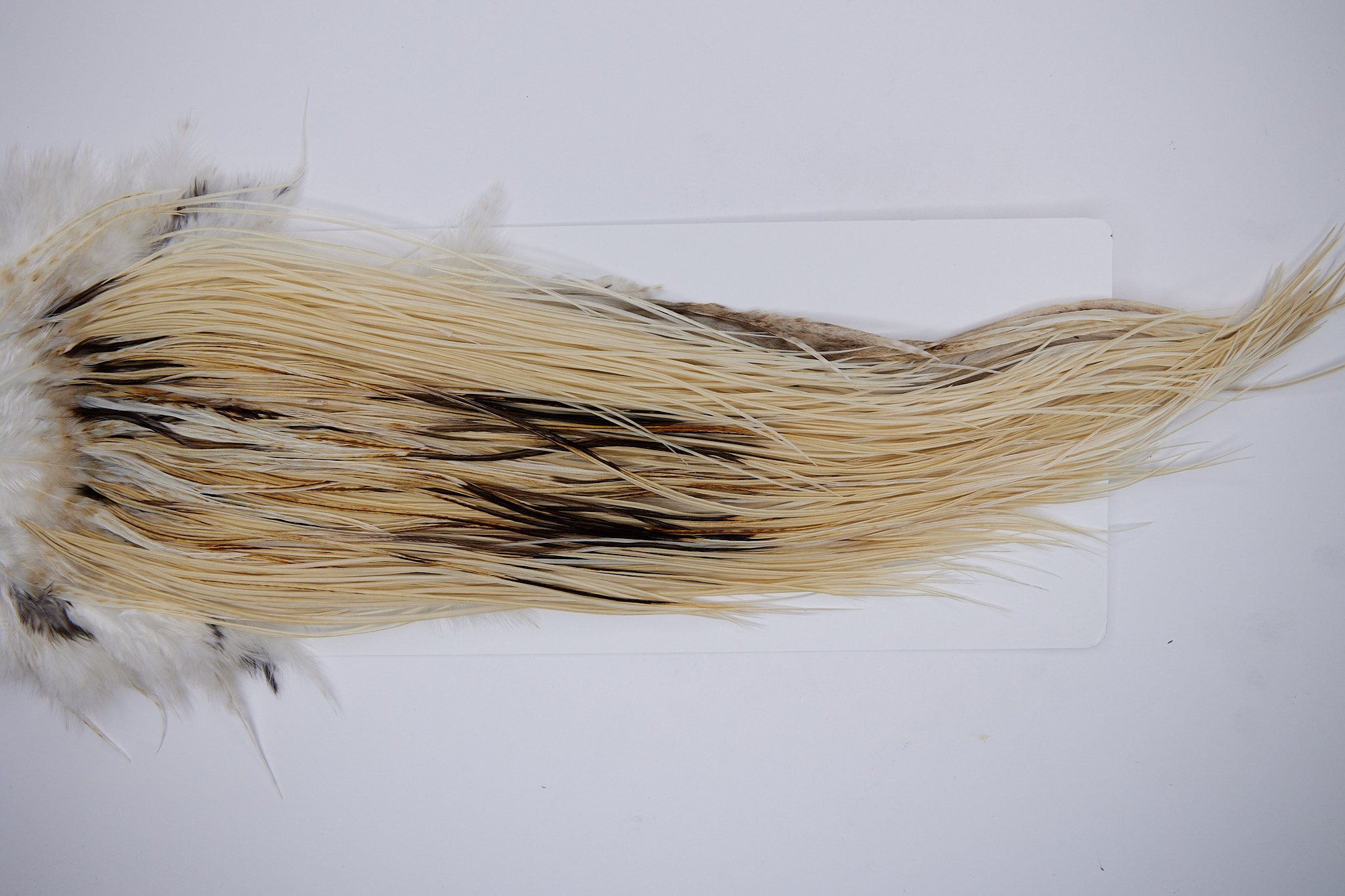 SKU 655 is a Whiting Light Ginger Bronze Grade MidgeSaddle that ties pedominately sizes 16-18. This is a new unused pelt. The photo shown is an actual photo of this dry fly hackle. CLICK THE PHOTO FOR AN ENLARGED VIEW.