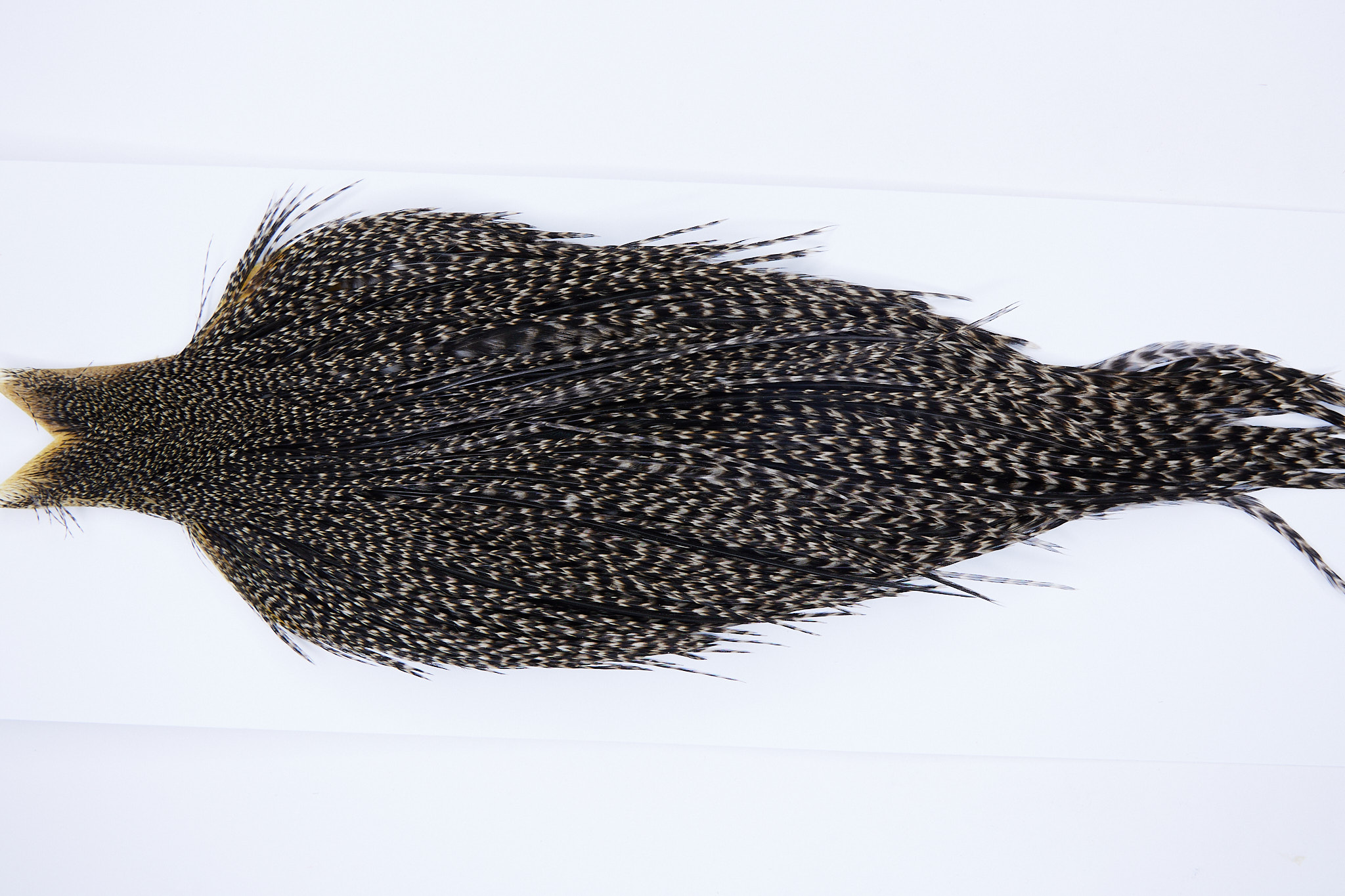 SKU 9918 is a JimsFlyCo Grizzly Variant #2 Grade Rooster Cape that ties pedominately sizes 10-20. This is a new unused pelt. The photo shown is an actual photo of this dry fly hackle. CLICK THE PHOTO FOR AN ENLARGED VIEW.
