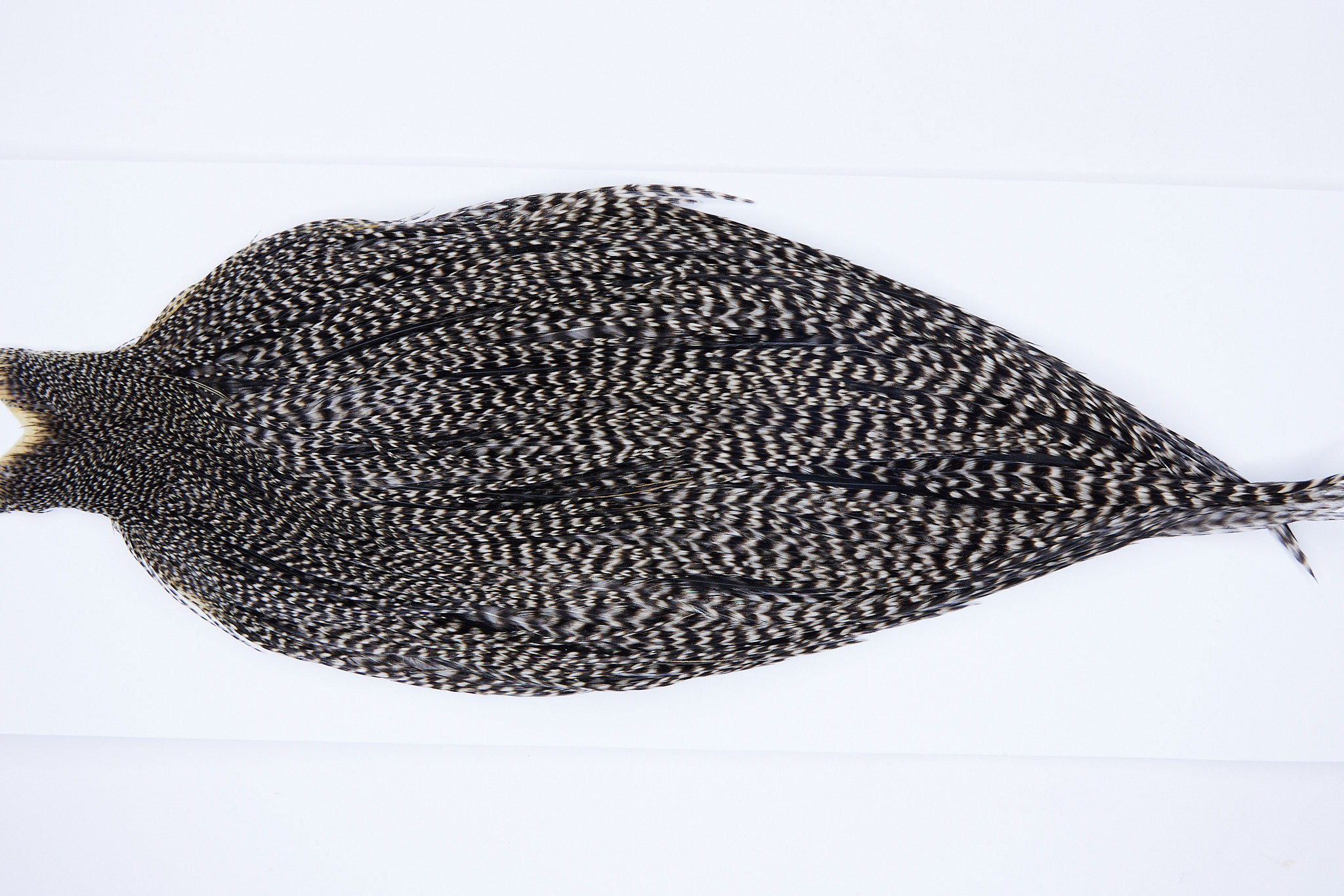 SKU 9931 is a JimsFlyCo Grizzly Variant #2 Grade Rooster Cape that ties pedominately sizes 10-18. This is a new unused pelt. The photo shown is an actual photo of this dry fly hackle. CLICK THE PHOTO FOR AN ENLARGED VIEW.