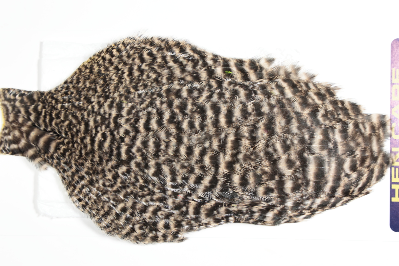 HHC-6757 American Hen Cape Grizzly dyed Tan. The photos shown are the actual photos of this wet fly cape. This is a NEW UNUSED CAPE.