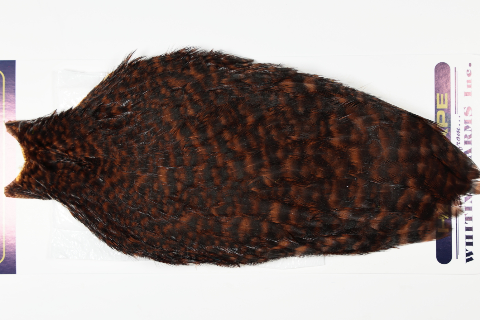 HHC-6762 American Hen Cape Grizzly dyed Brown. The photos shown are the actual photos of this wet fly cape. This is a NEW UNUSED CAPE.
