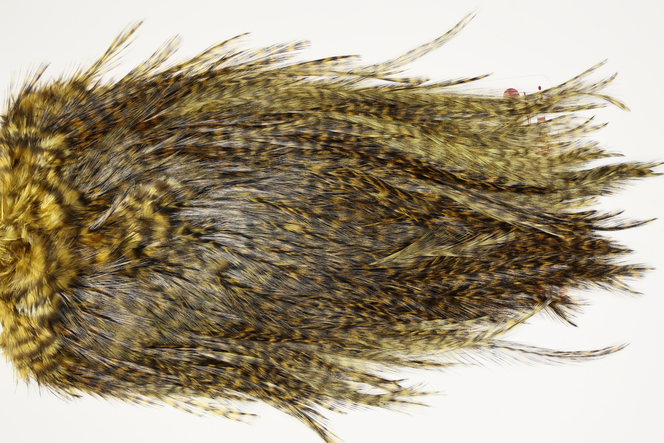 CDLBGS-7442 Coq De Leon Bronze Grade Saddle Golden Olive. The photo shown are the actual photos of this dry fly saddle. This is a new and unused saddle.