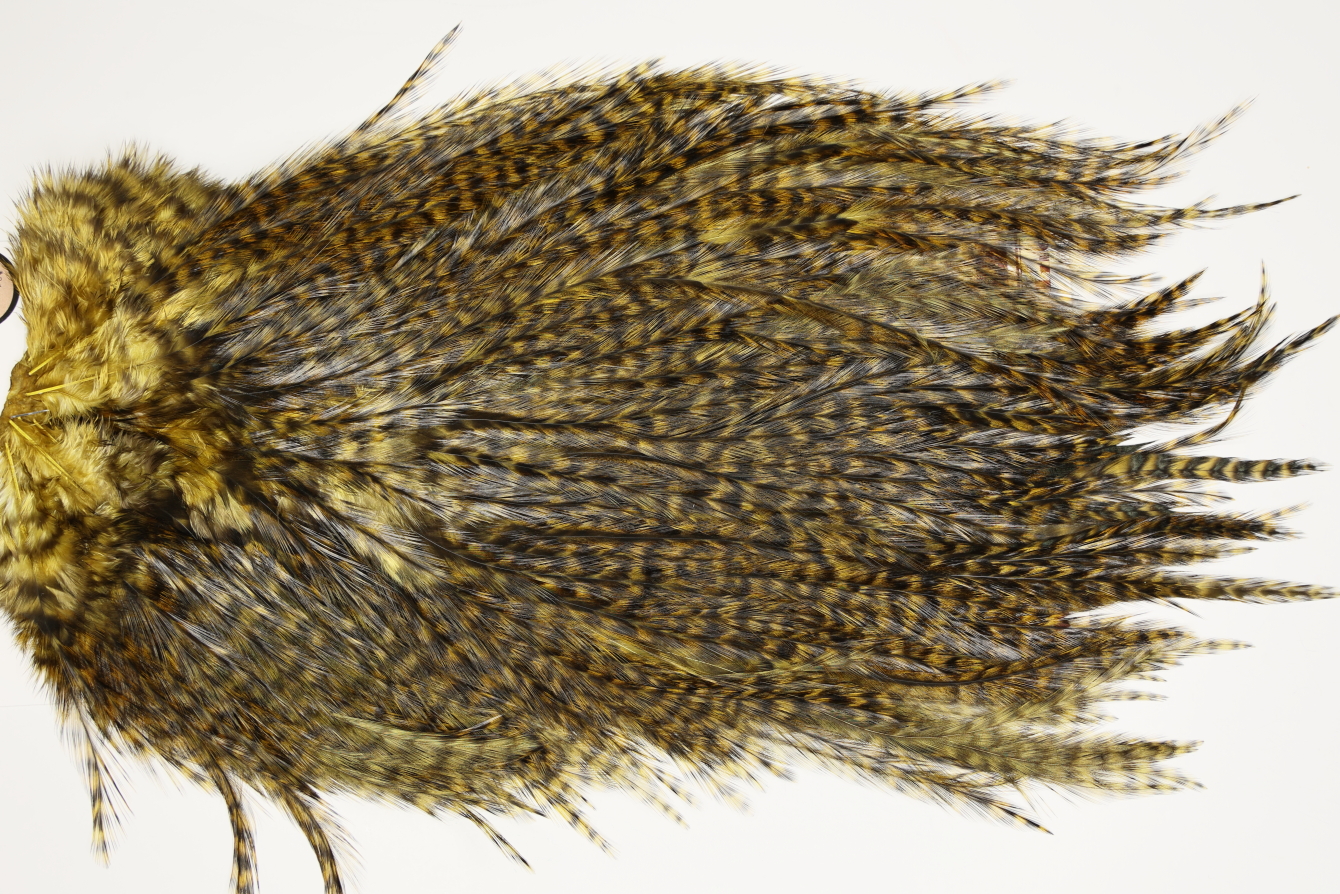 CDLBGS-7466 Coq De Leon Bronze Grade Saddle Golden Olive. The photo shown are the actual photos of this dry fly saddle. This is a new and unused saddle.