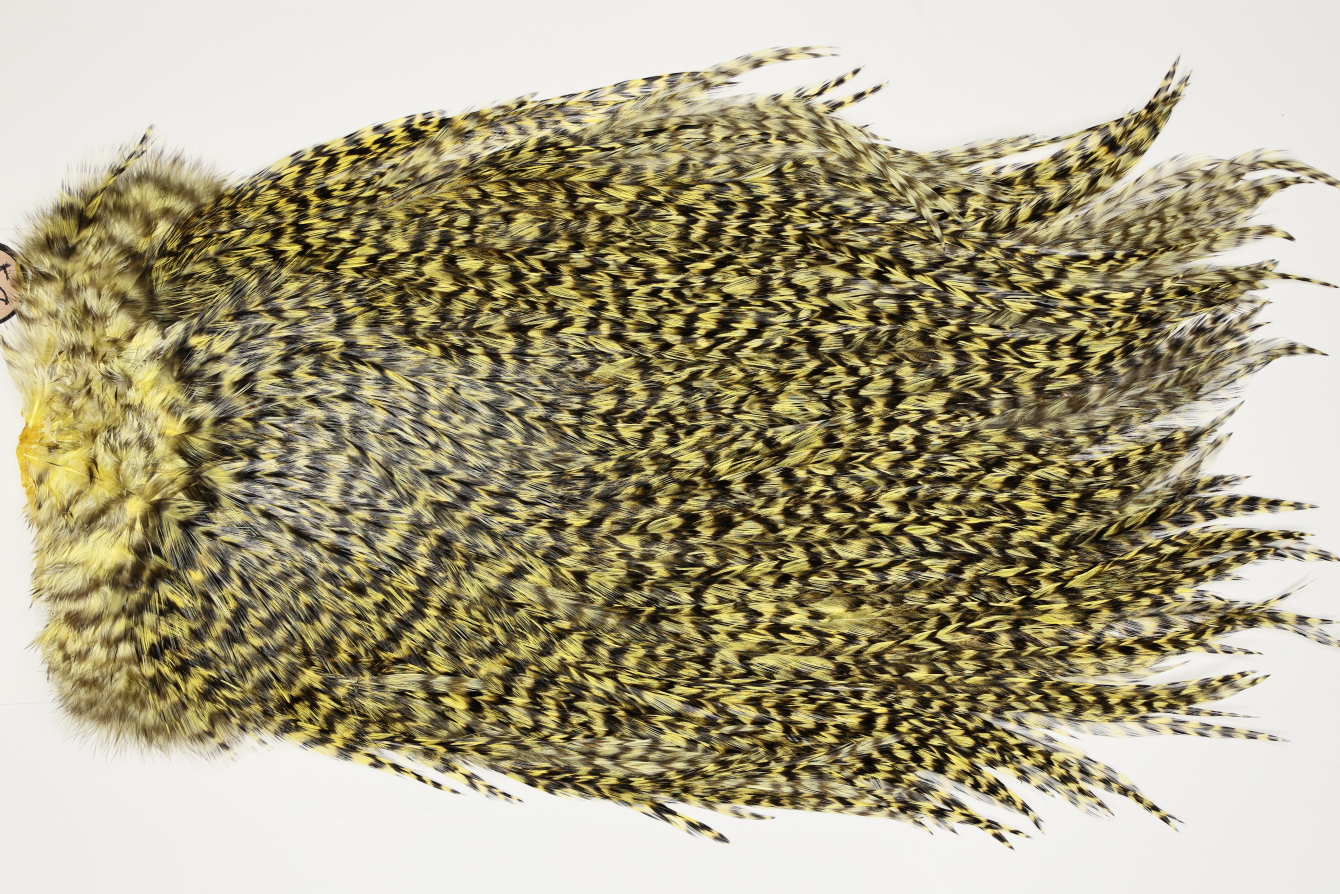 CDLBGS-7497 Coq de Leon Bronze Grade Saddle Pale Yellow. The photo shown are the actual photos of this dry fly saddle. This is a new and unused saddle.