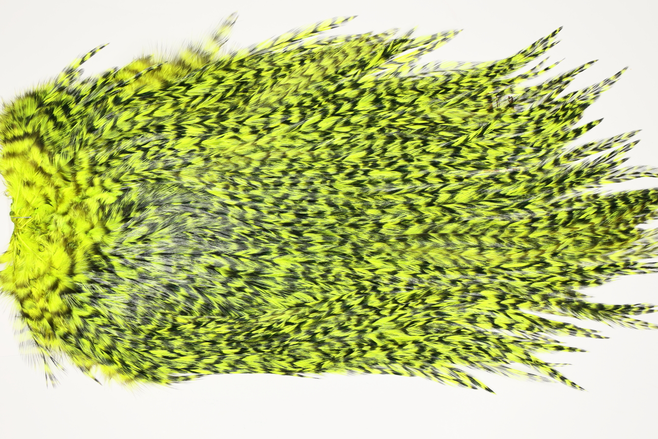 7510 Coq De Leon Dry Fly Hackle, Bronze Grade Saddle Yellow Chartreuse