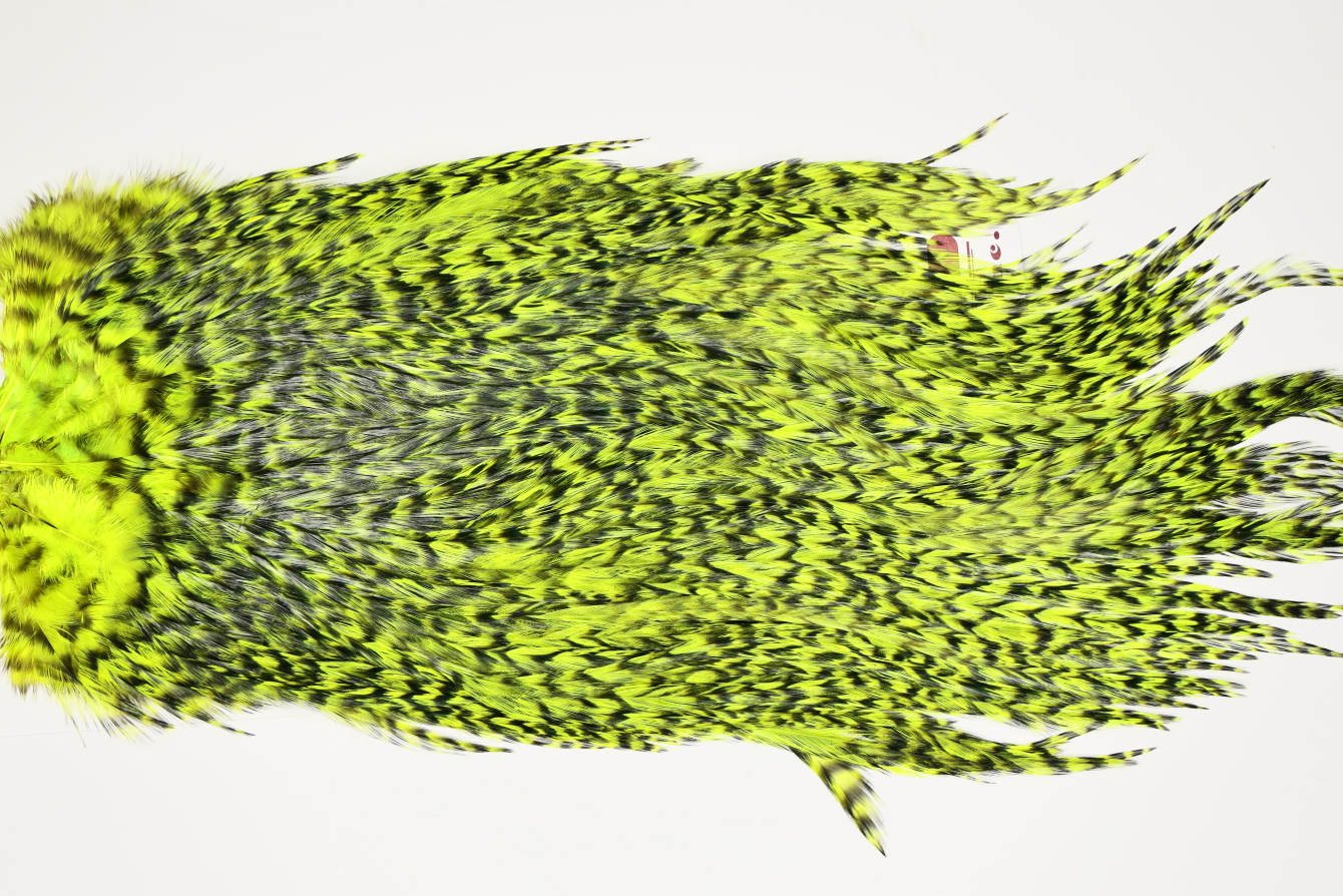 7514 Coq De Leon Dry Fly Hackle, Bronze Grade Saddle Yellow Chartreuse