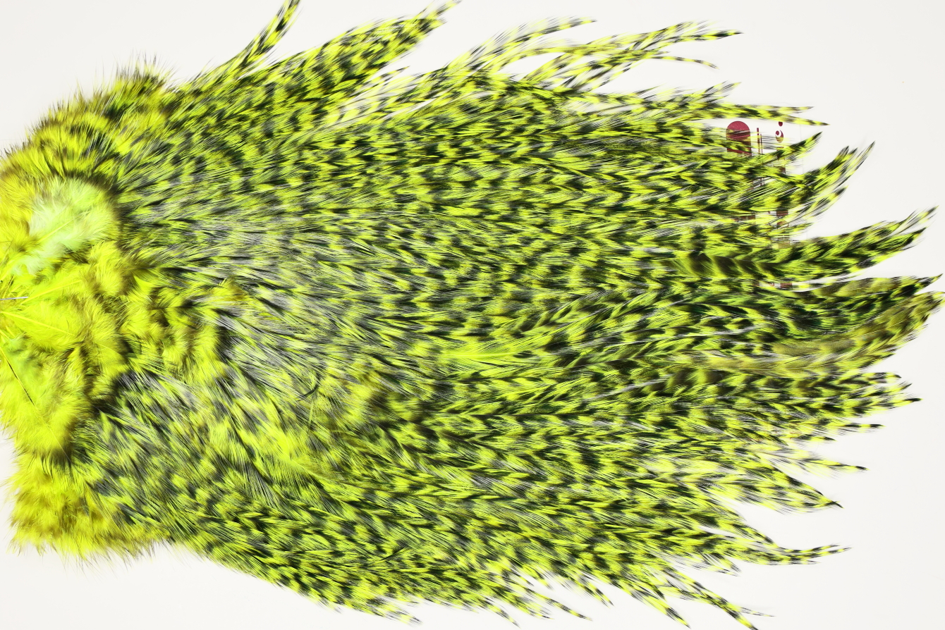 7521 Coq De Leon Dry Fly Hackle, Bronze Grade Saddle Yellow Chartreuse