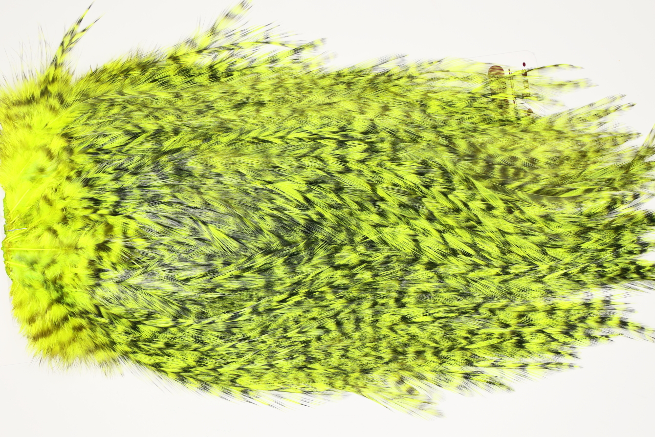 7523 Coq De Leon Dry Fly Hackle, Bronze Grade Saddle Yellow Chartreuse