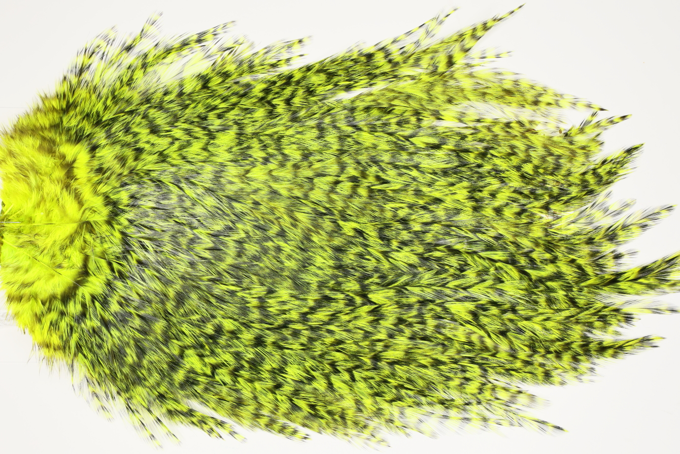 7525 Coq De Leon Dry Fly Hackle, Bronze Grade Saddle Yellow Chartreuse