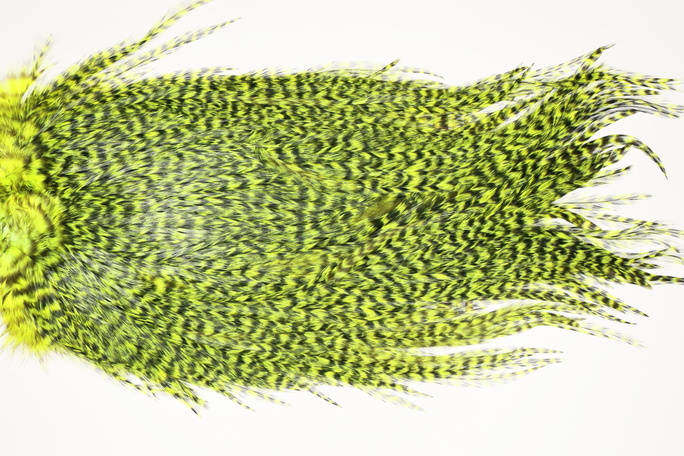 7527 Coq De Leon Dry Fly Hackle, Bronze Grade Saddle Yellow Chartreuse