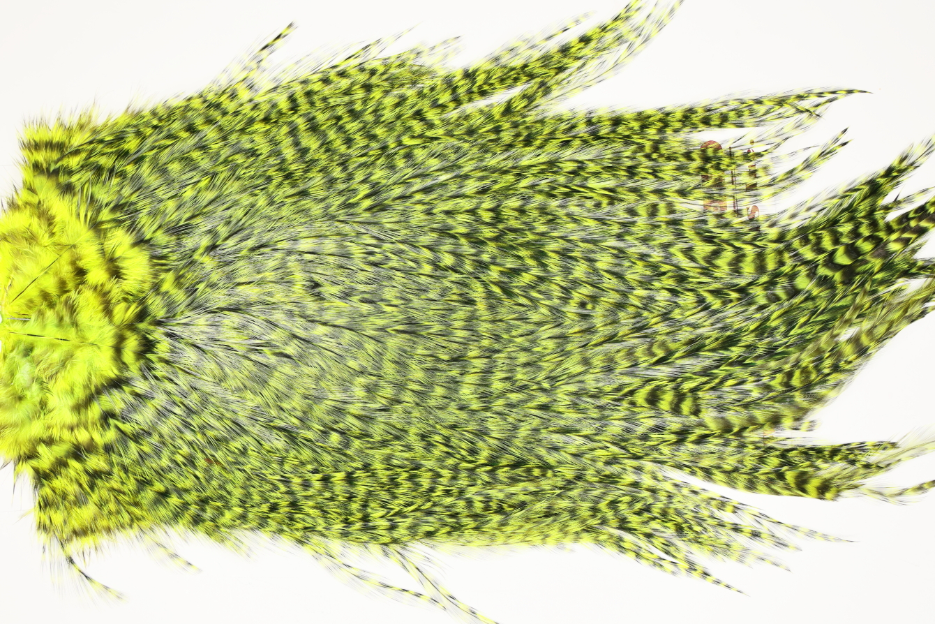 7529 Coq De Leon Dry Fly Hackle, Bronze Grade Saddle Yellow Chartreuse