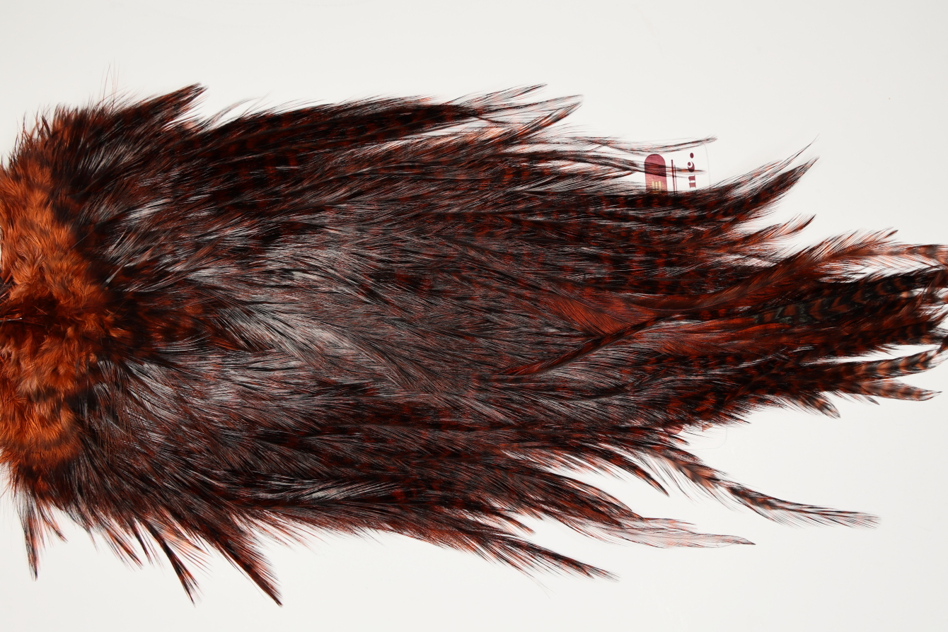 CDLBGS-7613 Coq De Leon Bronze Grade Saddle Fiery Brown. The photo shown are the actual photos of this dry fly saddle. This is a new and unused saddle.