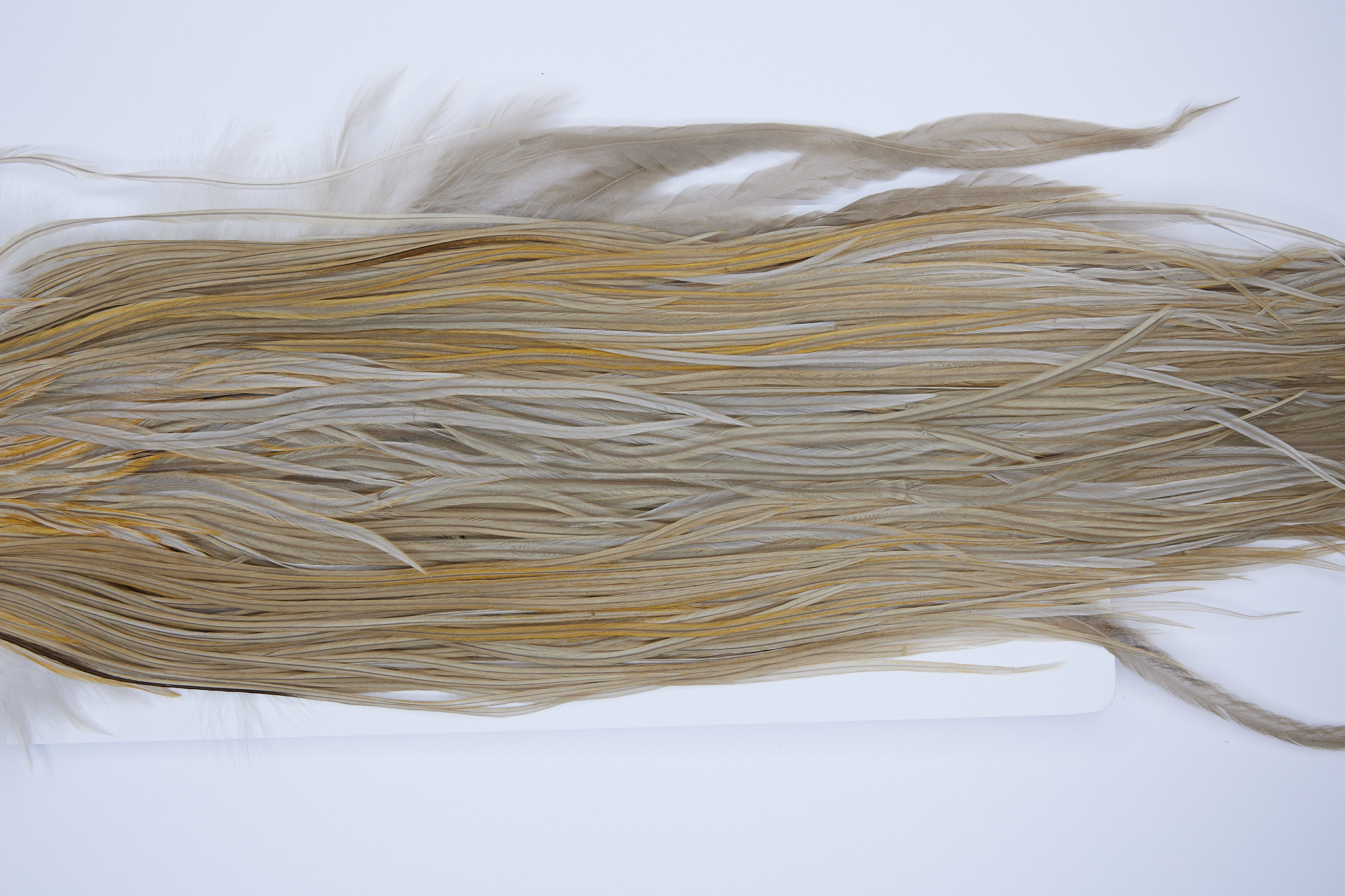 SKU 525 is a Hebert Light Tan Dun Gold Grade Rooster Saddle that ties pedominately sizes 12-14. This is a new unused pelt. The photo shown is an actual photo of this dry fly hackle. CLICK THE PHOTO FOR AN ENLARGED VIEW.