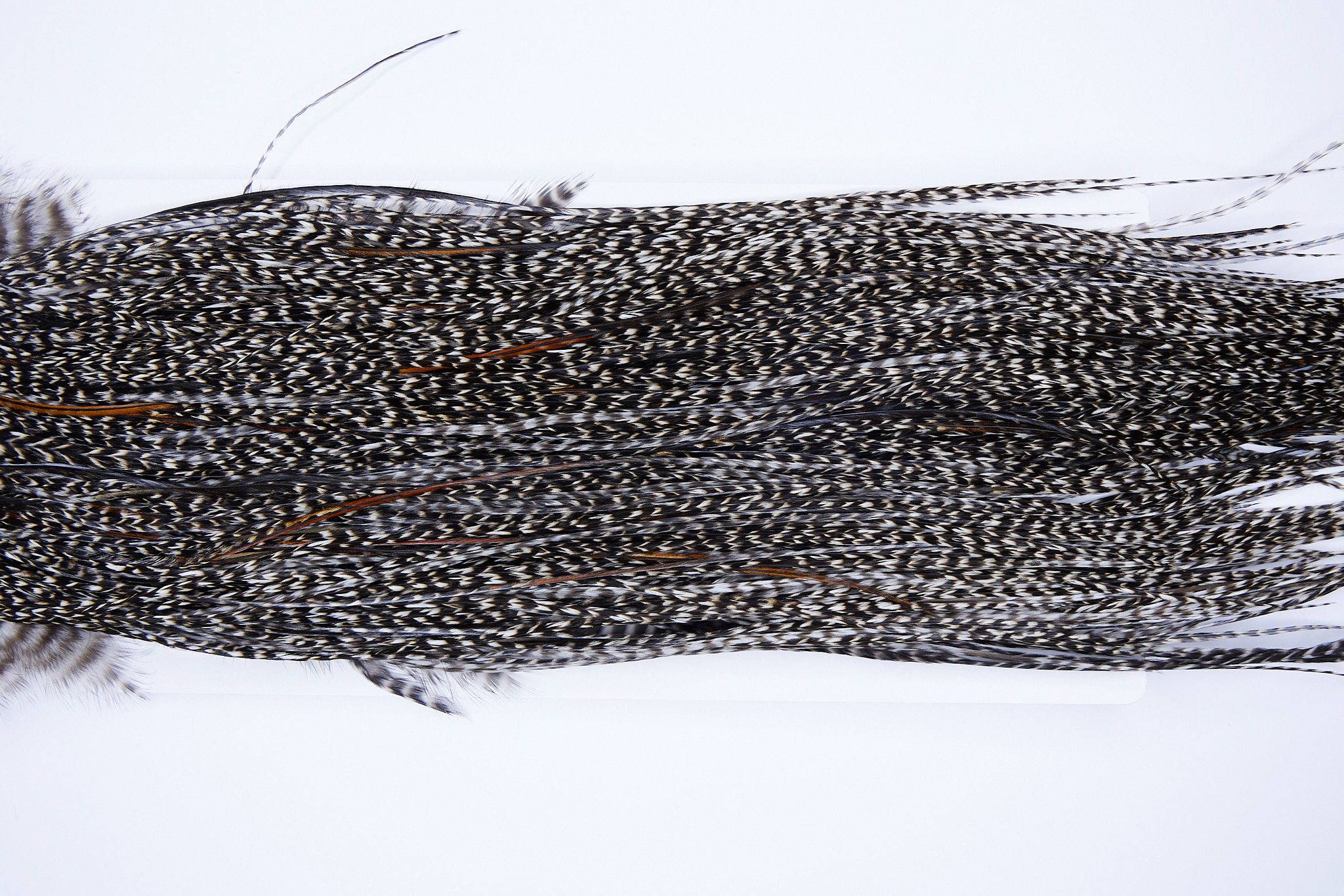 SKU 467 is a Heritage Grizzly Variant #2 Grade Rooster Saddle that ties pedominately sizes 10-16. This is a new unused pelt. The photo shown is an actual photo of this dry fly hackle. CLICK THE PHOTO FOR AN ENLARGED VIEW.