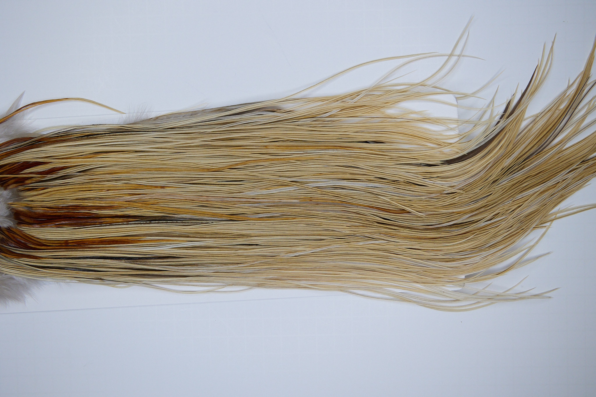 SKU 1792 is a Heritage Honey Dun #1 Grade Rooster Saddle that ties pedominately sizes 14-16. This is a new unused pelt. The photo shown is an actual photo of this dry fly hackle. CLICK THE PHOTO FOR AN ENLARGED VIEW.