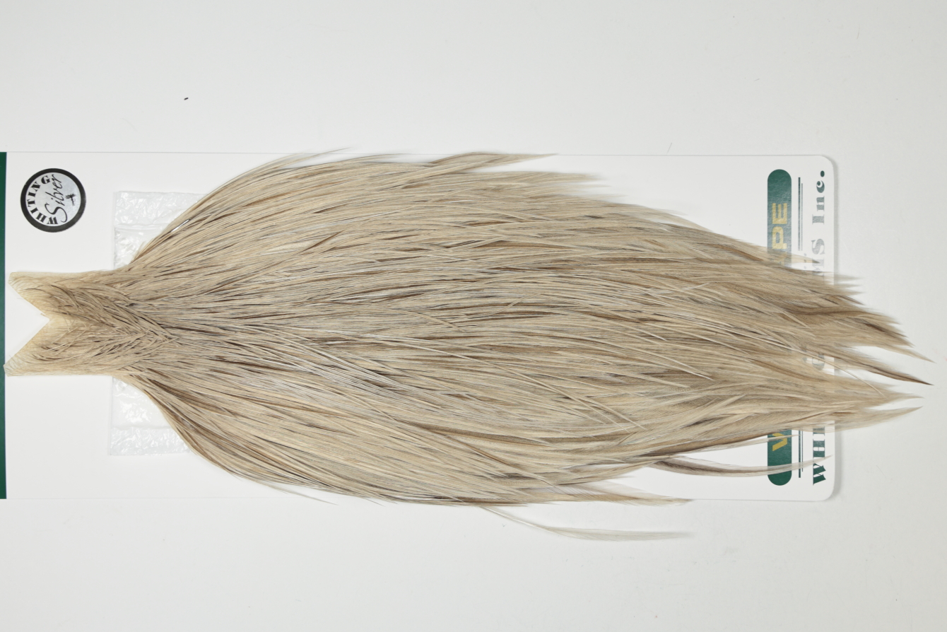 HSGC-6109 Heber Miner Silver Grade Cape Variant. This dry fly cape ties predominately sizes #8 to #22. The photos shown are the actual photos of this dry fly cape.