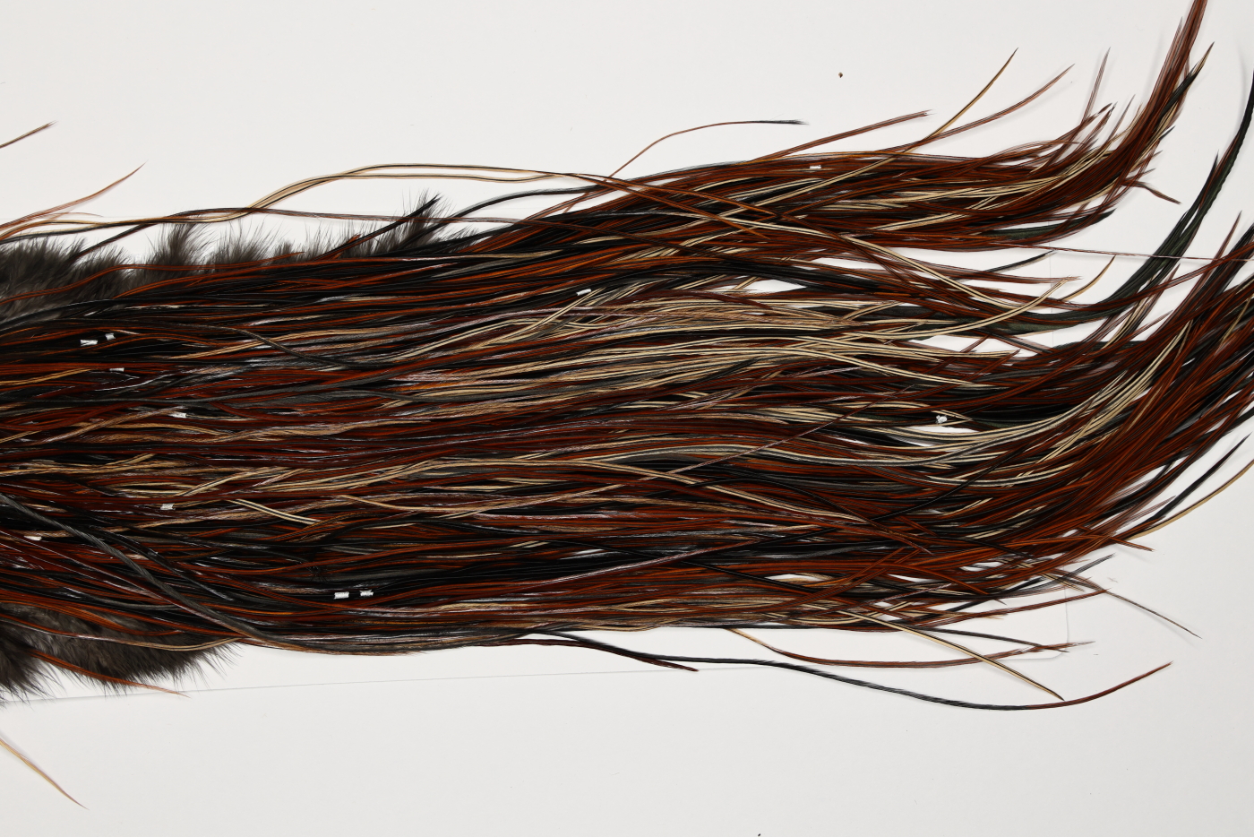 HTS3-8649 Heritage #3 Saddle Furnace, Ties Sizes 18-20. The photos shown are the actual photos of this dry fly saddle. This is a NEW UNUSED SADDLE.
