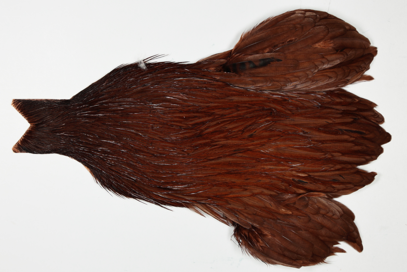 JimsFlyCo Coachman Brown Hen Cape. This is a wet fly cape. The photos shown are the actual photos of this wet fly cape. This is a NEW UNUSED CAPE.