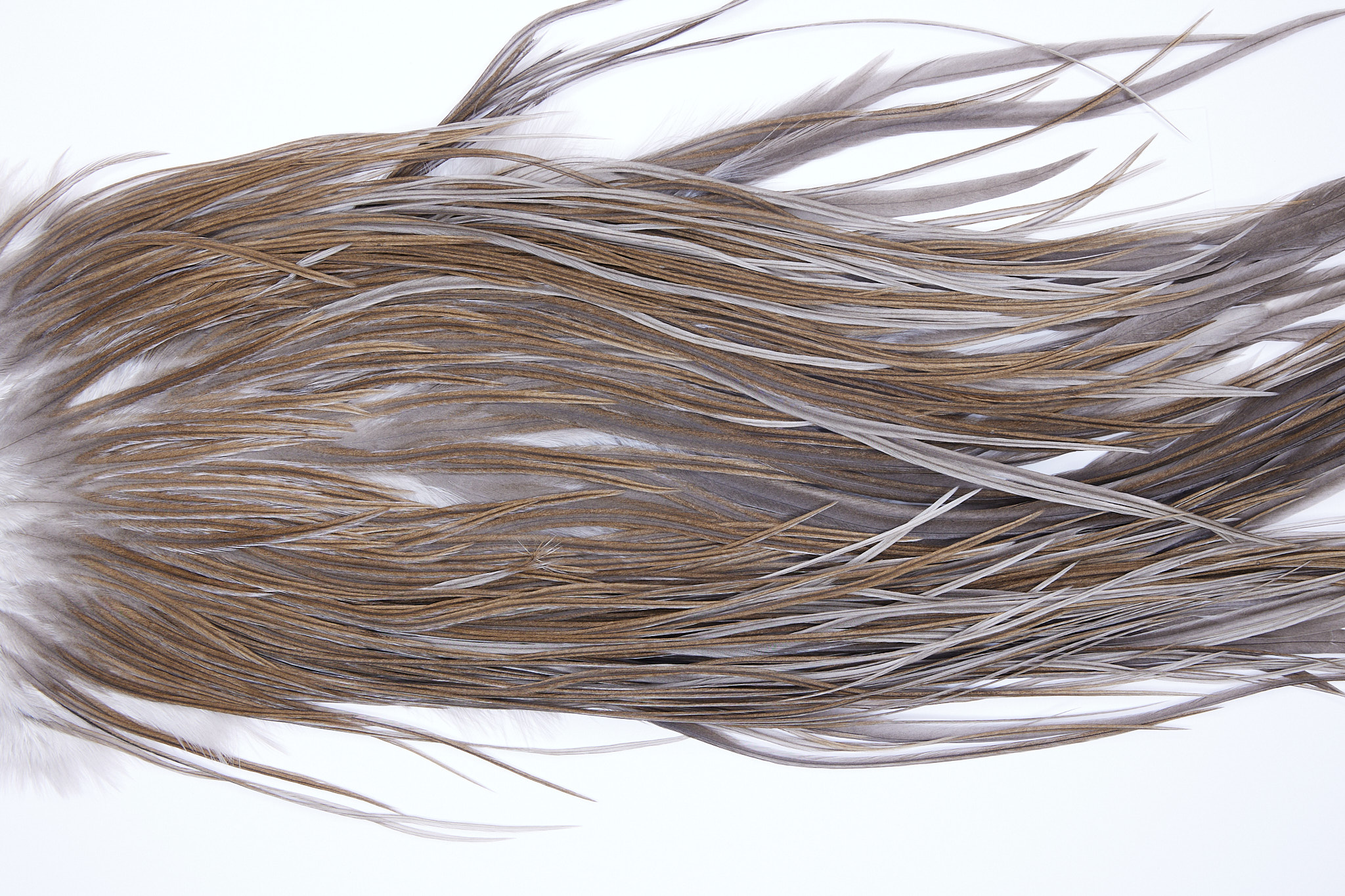 201 – JimsFlyCo Dry Fly Hackle, Dark Dun #2 Grade Rooster Saddle, Ties Sizes 12-14