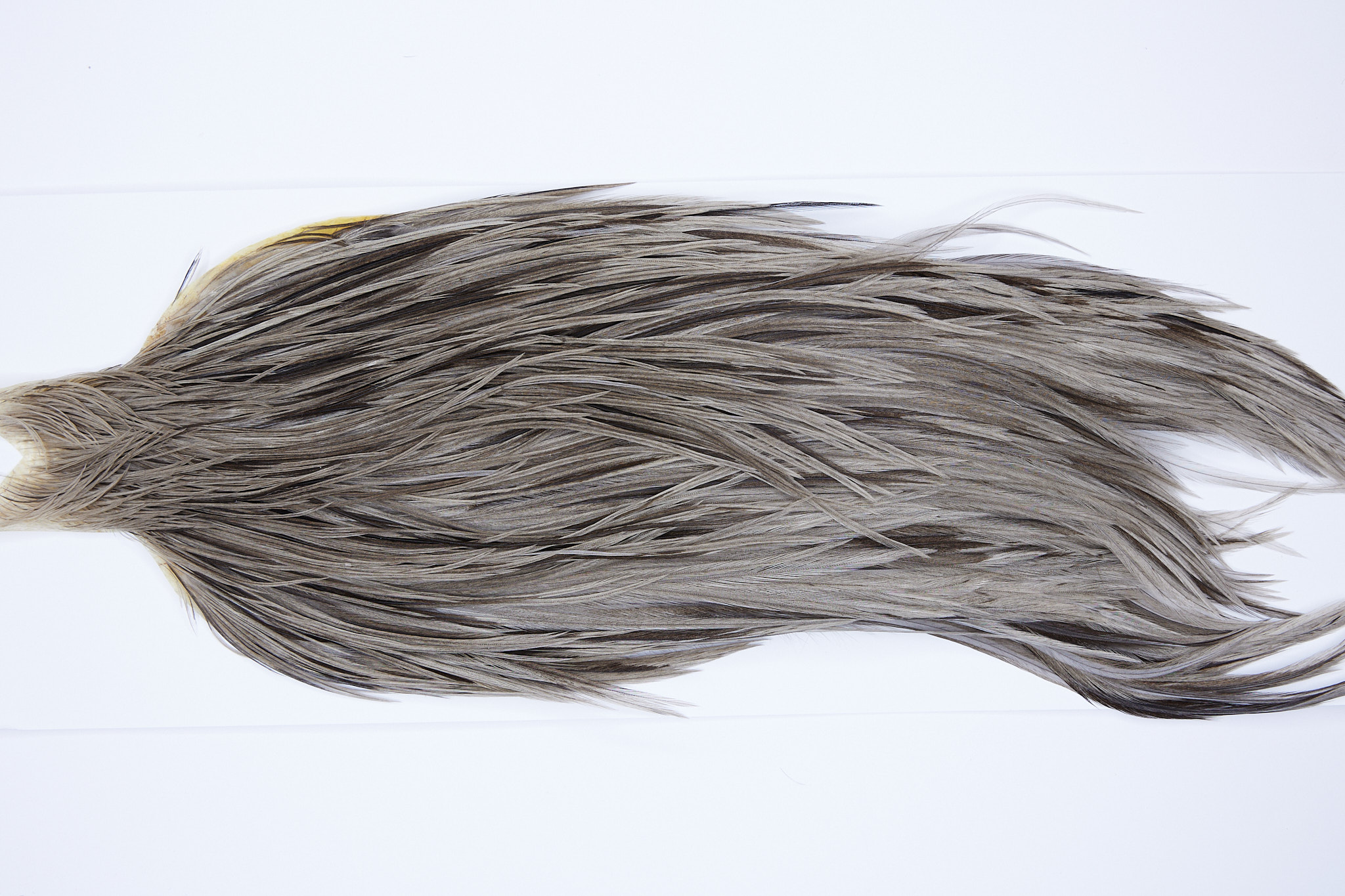 SKU 9785 is a JimsFlyCo Dun Splash #2 Grade Rooster Cape that ties pedominately sizes 10-18. This is a new unused pelt. The photo shown is an actual photo of this dry fly hackle. CLICK THE PHOTO FOR AN ENLARGED VIEW.