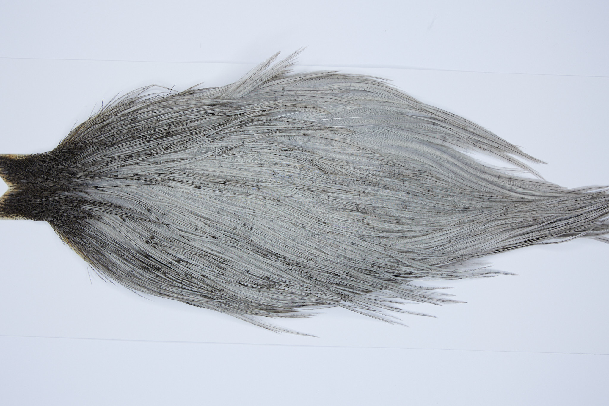 SKU 9504 is a JimsFlyCo Light Dun #1 Grade Rooster Cape that ties pedominately sizes 12-24. This is a new unused pelt. The photo shown is an actual photo of this dry fly hackle. CLICK THE PHOTO FOR AN ENLARGED VIEW.