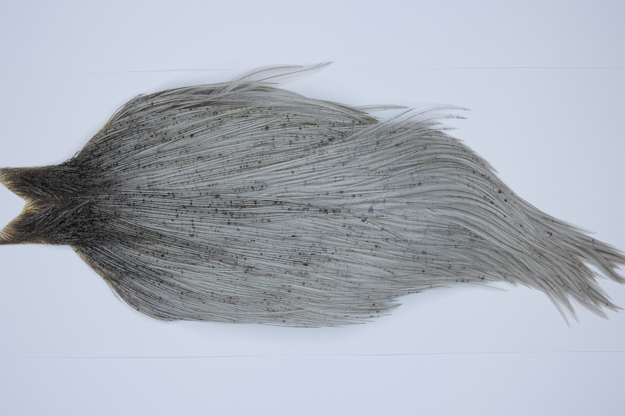 SKU 9530 is a JimsFlyCo Light Dun #2 Grade Rooster Cape that ties pedominately sizes 10-22. This is a new unused pelt. The photo shown is an actual photo of this dry fly hackle. CLICK THE PHOTO FOR AN ENLARGED VIEW.