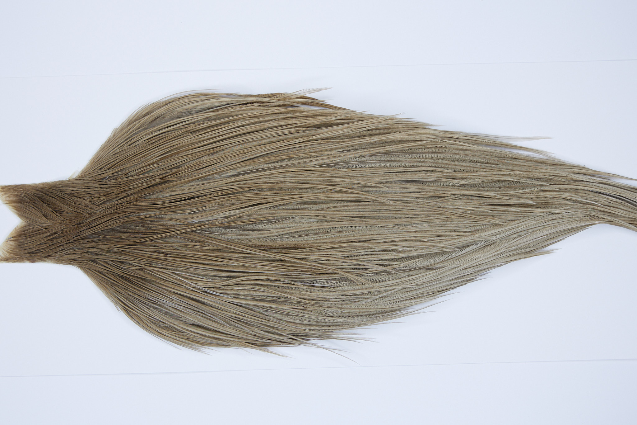 SKU 9545 is a JimsFlyCo Light Dun #2 Grade Rooster Cape that ties pedominately sizes 12-22. This is a new unused pelt. The photo shown is an actual photo of this dry fly hackle. CLICK THE PHOTO FOR AN ENLARGED VIEW.