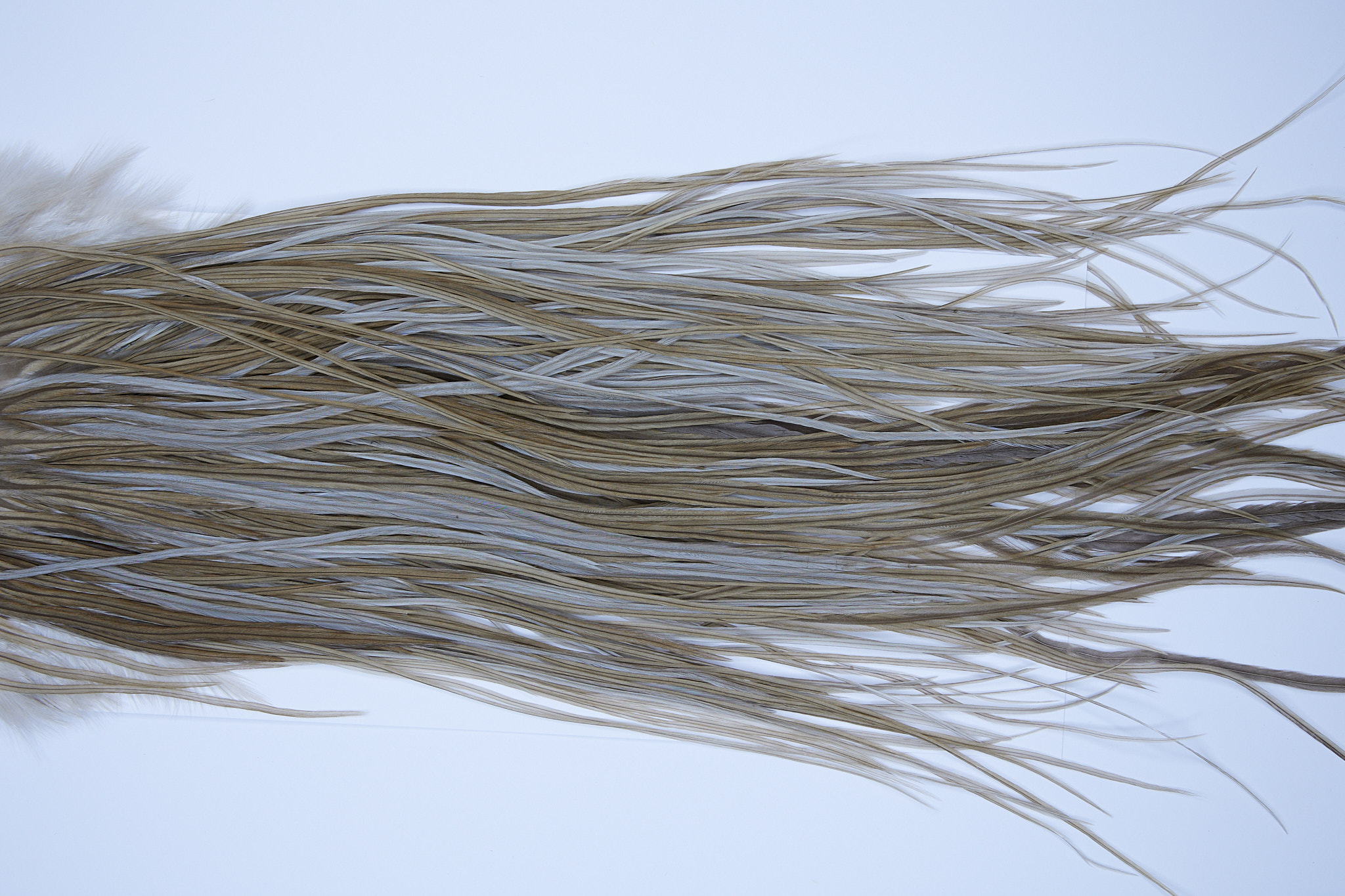 SKU 9348 is a JimsFlyCo Medium Dun #1 Grade Rooster Saddle that ties pedominately sizes 12-14. This is a new unused pelt. The photo shown is an actual photo of this dry fly hackle. CLICK THE PHOTO FOR AN ENLARGED VIEW.