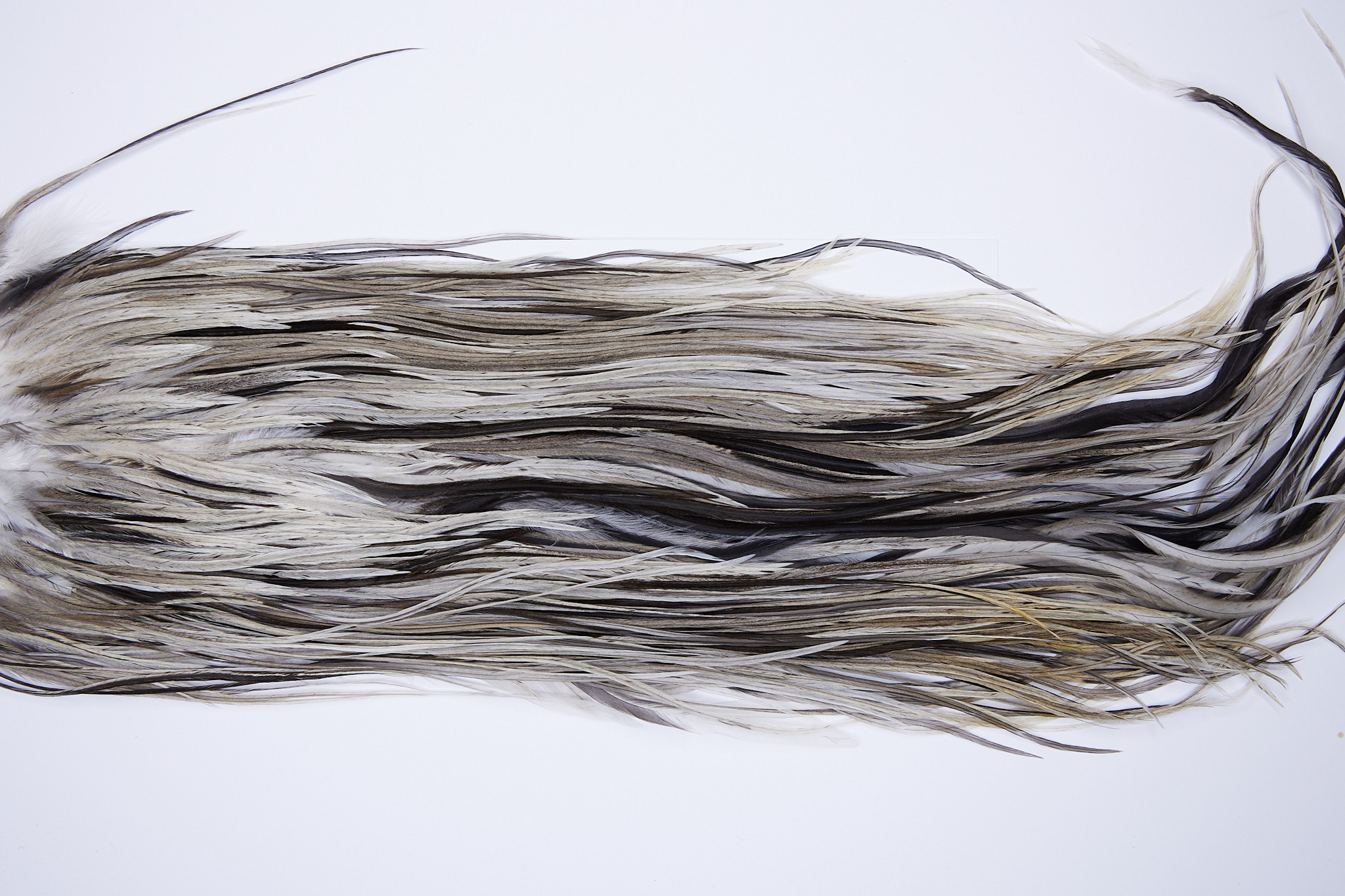 SKU 72 is a JimsFlyCo Variant #1 Grade Rooster Saddle that ties pedominately sizes 12-14. This is a new unused pelt. The photo shown is an actual photo of this dry fly hackle. CLICK THE PHOTO FOR AN ENLARGED VIEW.