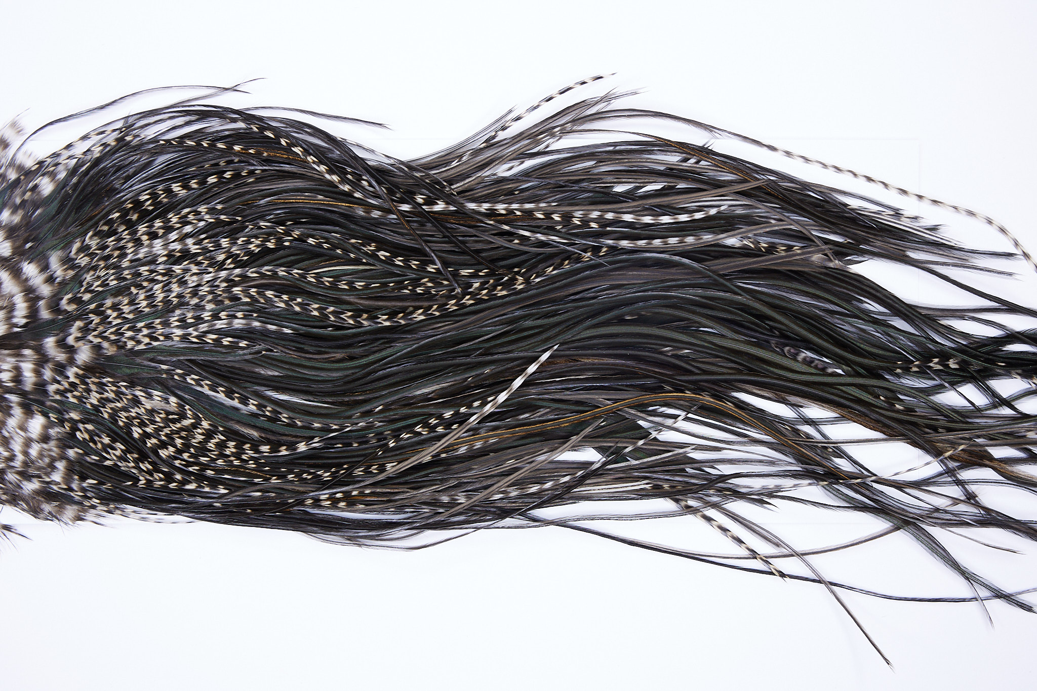 SKU 84 is a JimsFlyCo Variant #2 Grade Rooster Saddle that ties pedominately sizes 12-16. This is a new unused pelt. The photo shown is an actual photo of this dry fly hackle. CLICK THE PHOTO FOR AN ENLARGED VIEW.